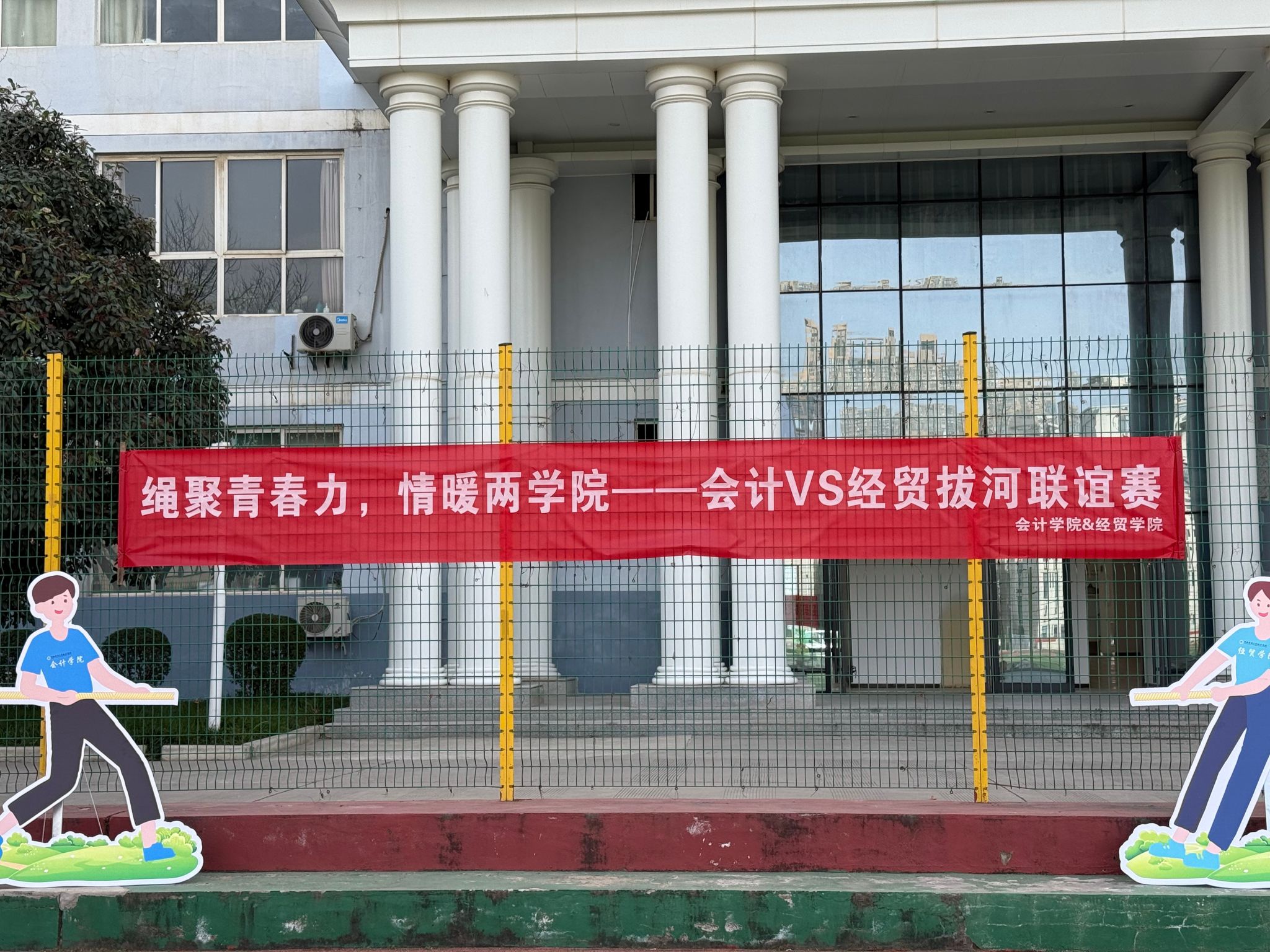 为弘扬团结协作的体育精神,增进跨院系交流合作,2025年12月23日午间,会计学院学生会联合经济贸易学院学生会在田径场共同举办了“经会联动·同绳共进”主题拔河比赛。经济贸易学院学工秘书闫树同、会计学院团总支书记张瀚宇等师生代表共同参与,通过竞技互动深化两个学院的友谊。在竞技场上,各学院健儿以绳索为纽带,勠力同心、步调一致,每一次角力都彰显着勠力同心的意志品质;场边观战者群情激昂,助威声浪震彻云霄,每一声喝彩都化作选手奋勇争先的不竭动力,...
