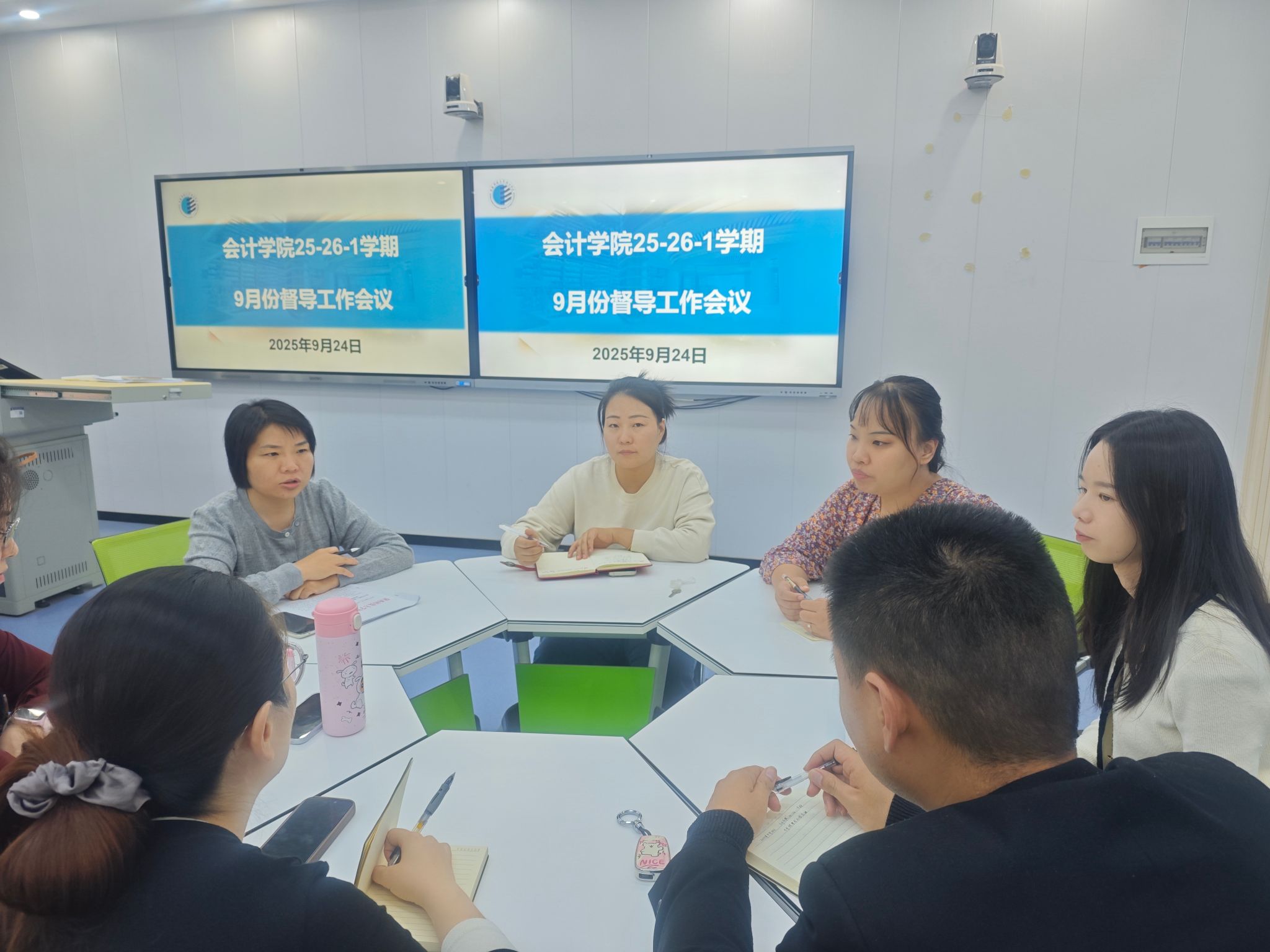 为充分发挥教学督导在学校质量建设中的重要作用,实现教学督导工作的科学化、规范化、常态化,9月24日下午,会计学院在教学楼216召开25-26-1学期9月份督导工作会议。会议由督导秘书孙萌焌主持,督导组成员及教师代表参会。