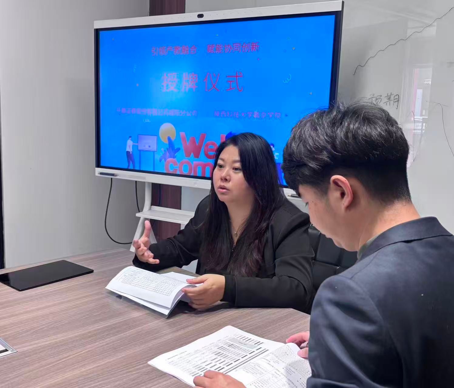 参观结束后,校企双方召开专业建设研讨会,重点围绕金融工程专业“十五五”规划的制定展开交流。会议由合规风控部总经理王荣主持,财经审计系系主任及茹、金融工程专业教研室主任侯茜云及贠凯鸽、陈庆哲两位教师,与开源证券投资业务部、合规风控部、财富管理部的业务骨干共同参会。