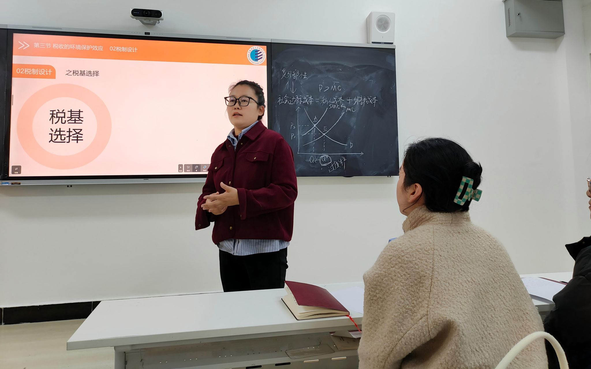 宇文可征老师通过生动有趣案例与逻辑推导相结合,将抽象理论具象化,引导听众深入理解税收法律制度的概念;陈庆哲老师围绕 “假设检验” 主题,结合教研实践,分享了对课堂优化与质量提升的思考;谭丽娜老师以手工账务处理流程为切入点,通过流程图解析,清晰呈现账务处理的全环节逻辑。解春玉老师以 “小麦 - 面粉 - 面包” 的产业链为例,生动阐释增值税的计税原理,让税收知识变得通俗易懂;李燕昭老师聚焦 “税收的环境保护效应”,从治污效果、税制设计、政策比较三个维度,剖析税收在环保领域的作用机制。