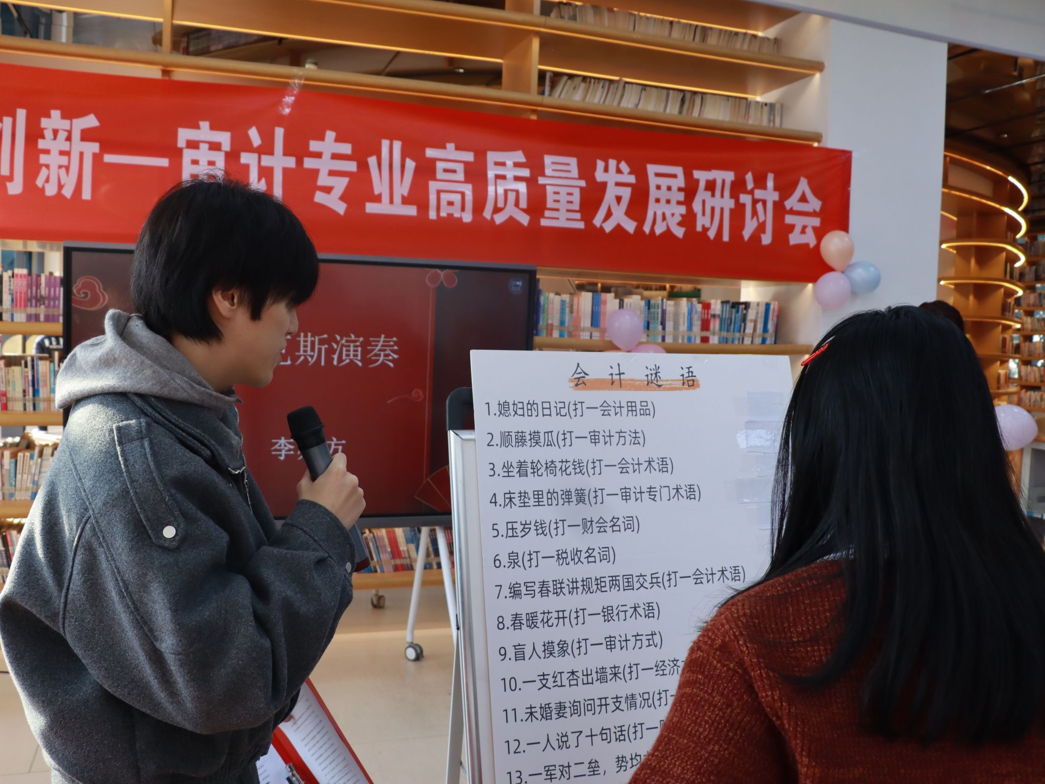 跨年联欢会部分,学生们精彩的表演为会议注入了青春活力。悠扬的歌声还有吉他等乐器伴奏、有笑话、有养生分享,还有“你画我猜”、更有审计谜语吸引了所有专家和教师,人人争相抢答,欢声笑语不断。丰富多彩的节目和热情洋溢的氛围充分展现了审计专业师生的凝聚力与向阳向上的蓬勃朝气。