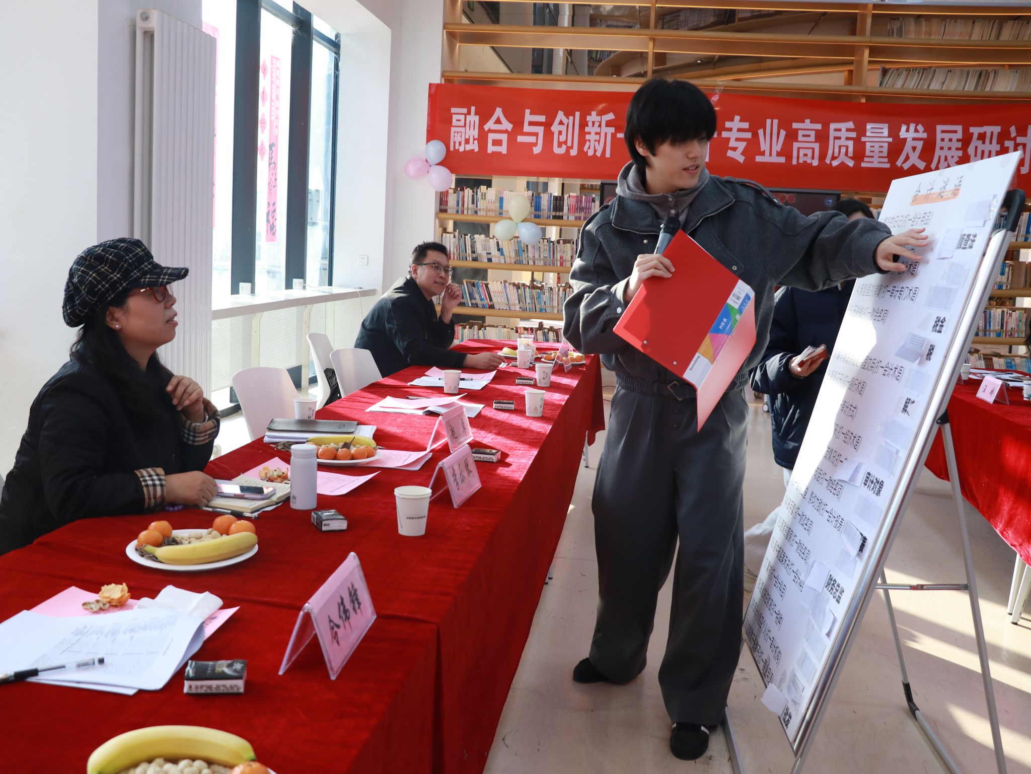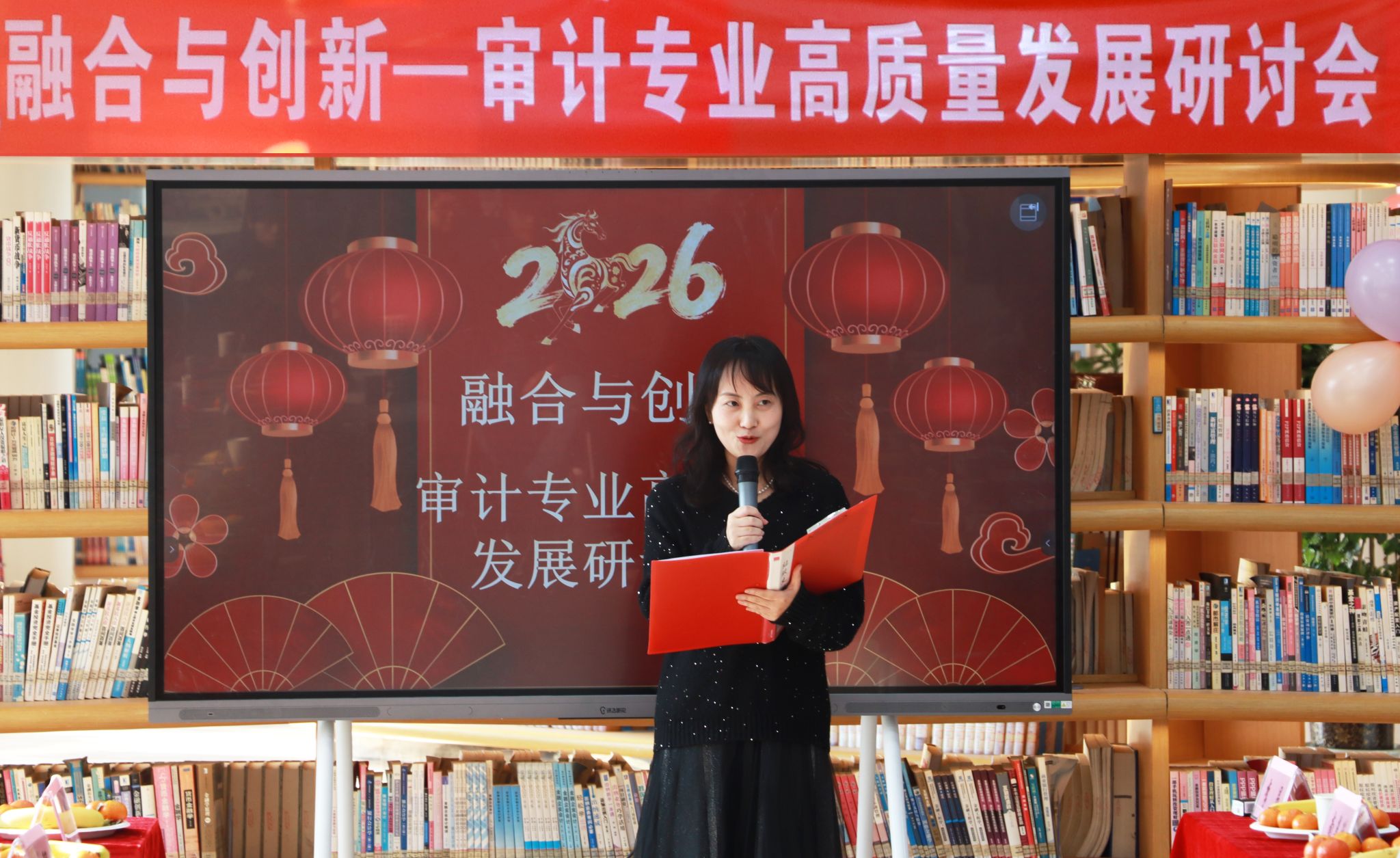 为推动审计专业高质量发展,12月26日下午,会计学院审计专业在专业带头人马焱教授的组织策划下,成功举办了“审计专业跨年联欢暨高质量发展研讨会”。下午14:30,活动在图书馆一楼正式拉开帷幕。审计教研室主任李昂主持会议并介绍到场嘉宾,包括校长黄国泉、副校长李宗领、会计学院院长赵卓,西京学院审计系主任令伟锋教授,宝鸡钛业股份有限公司审计主管副总高雅、笃信会计师事务所所长孙永强、陕西圣泉乳业科技有限公司人力主管副总李彩芹、青岛啤酒集团西北销售财务总监李乐琴等行业精英及政府审计人员代表;审计专业全体教师与学生代表共同参会。