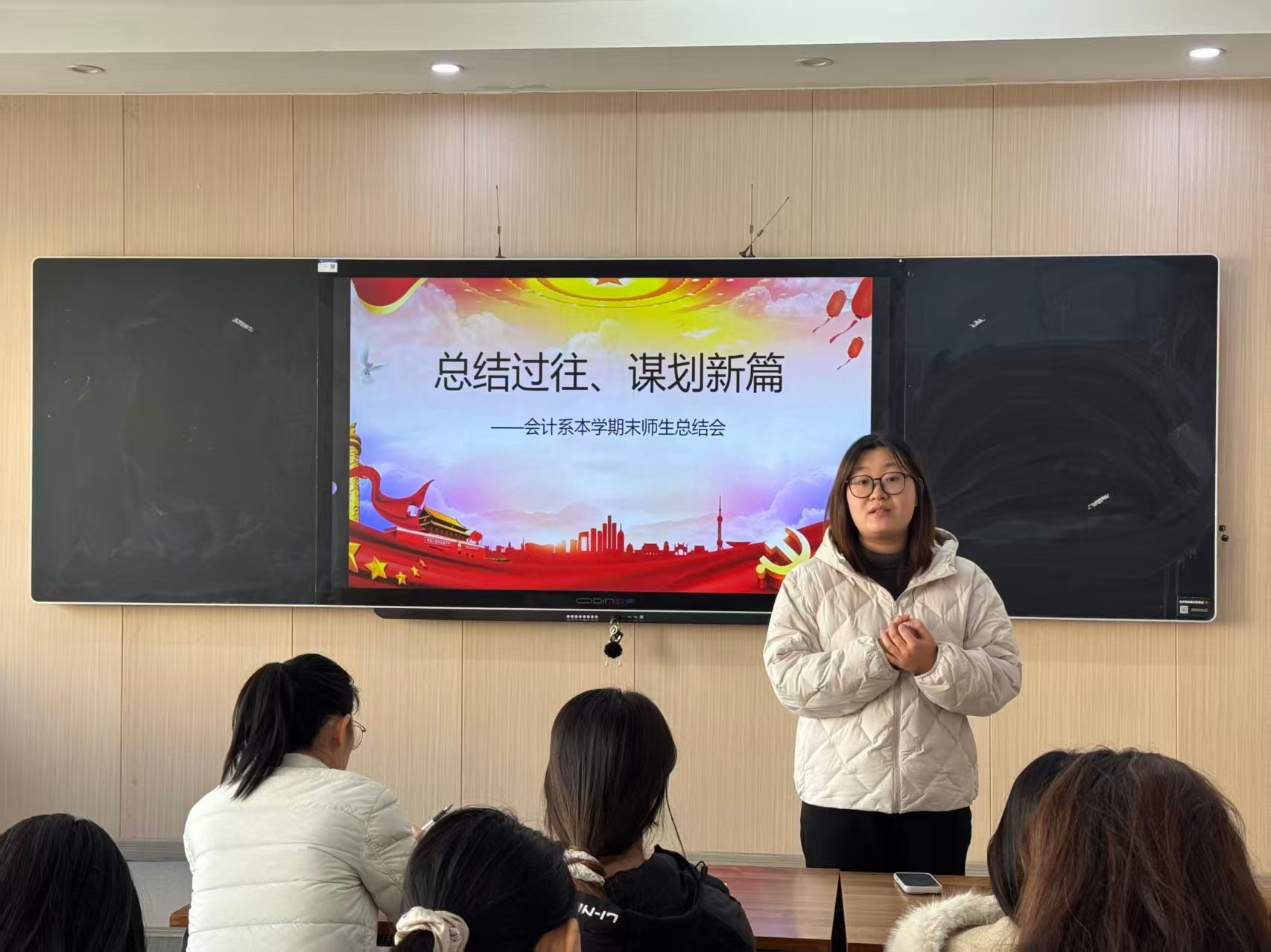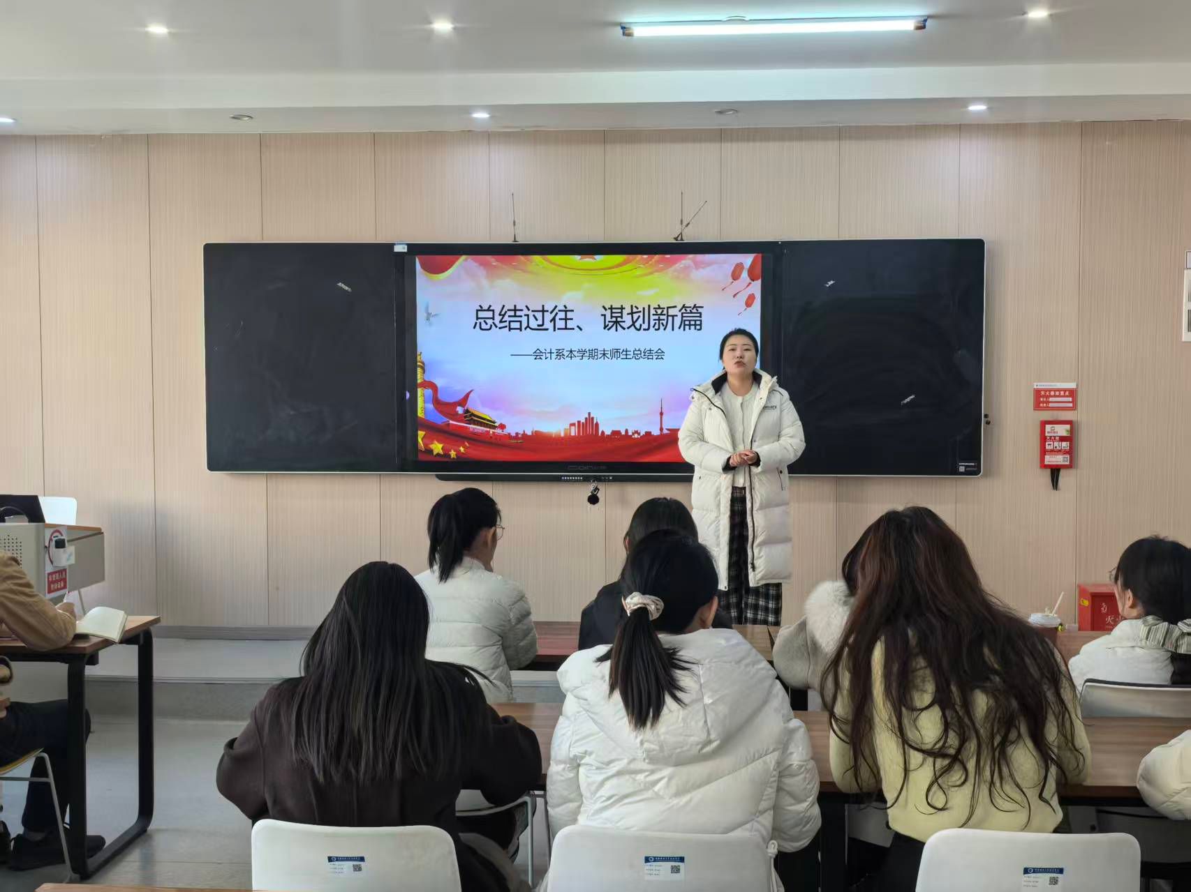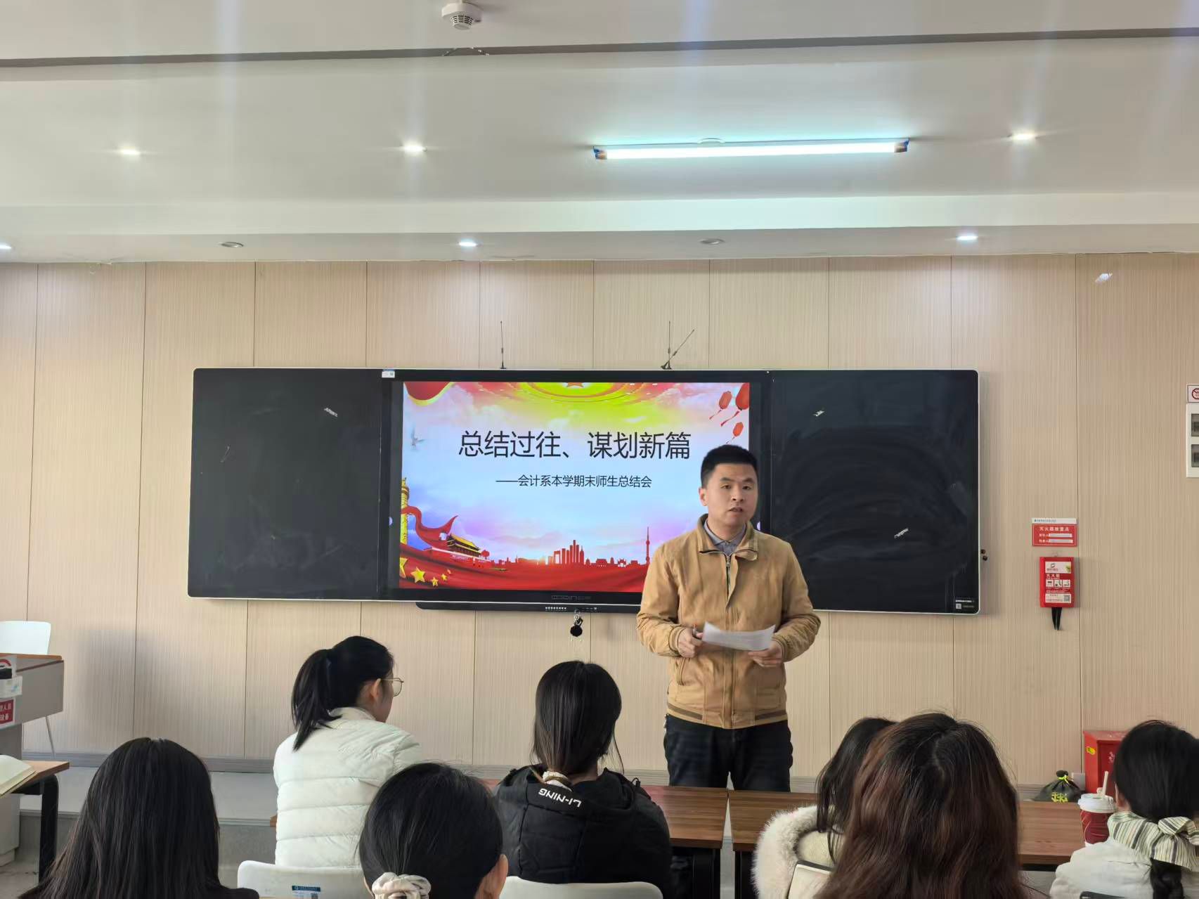 为紧扣国家会计行业数字化转型发展战略与学校高素质人才培养体系建设的核心目标,全面总结2025年会计系各项工作成果,精准部署2026年重点任务。2026年1月7日,会计系召开本年度工作总结与未来工作规划会议。会计系全体教师及学生代表参会,会议围绕年度工作复盘、未来规划研讨、师生互动交流及期末工作安排等核心议题展开,对标学校高质量发展要求,系统梳理全年教学科研与育人成果,为系部下一阶段高质量发展凝聚共识、明确路径。