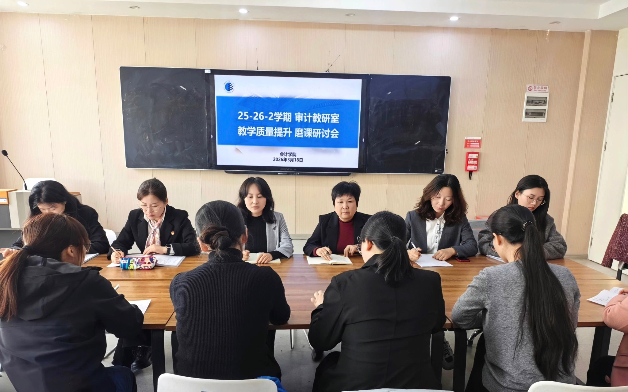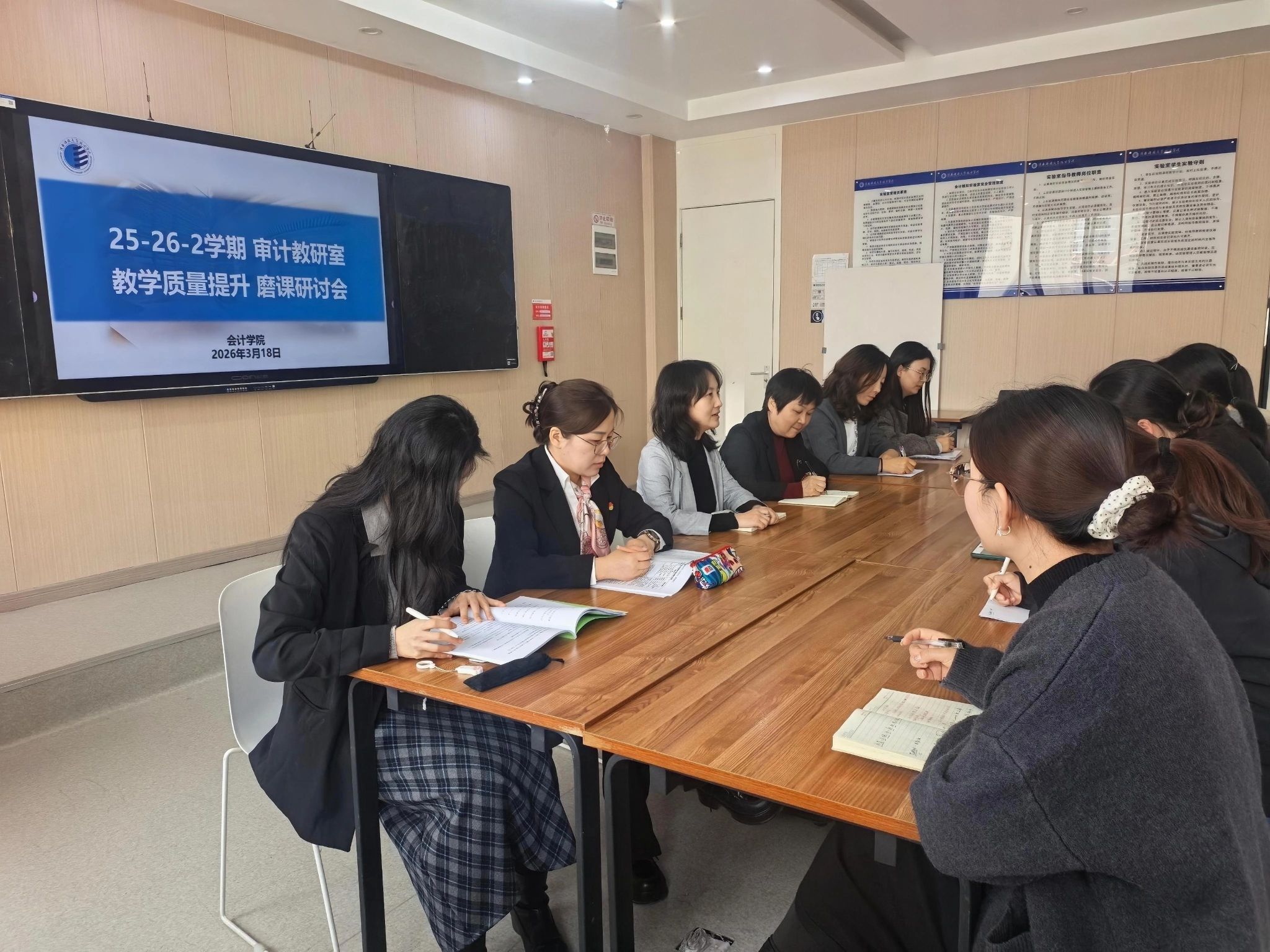 此次磨课活动不仅清晰梳理出审计专业多门核心课程的教学优化路径,进一步凝聚了教研室的教学教研共识,更在思维的碰撞与交流中提升了教师们的教学设计能力与教学创新思维。审计教研室将以此次磨课为重要契机,持续开展常态化、精细化的教研磨课活动,不断深挖审计专业课程内涵,创新教学模式、迭代优化课程内容,推动数智化技术与审计教学的深度融合。同时,教研室会切实把磨课研讨的收获转化为教学实践的动力,持续深化课堂教学研究、完善专业课程体系,深耕教学、精研课堂,为培育契合行业发展需求的高素质复合型审计专业人才筑牢教学根基,也为学院会计专业群的内涵式高质量发展注入强劲的教研动力。