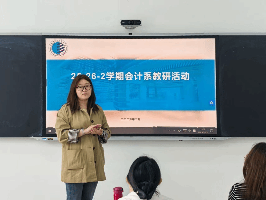 为深化会计学专业教学改革,交流教学经验,提升教学质量,2026年3月25日,会计系会计实训教研室于教学楼302教室开展教研活动,会议由教研室主任杨曦主持。本次会议聚焦《基础会计》课程教学优化、2025-2026-2学期授课情况复盘等议题,教研室全体教师全员参与,深入研讨、凝聚共识。