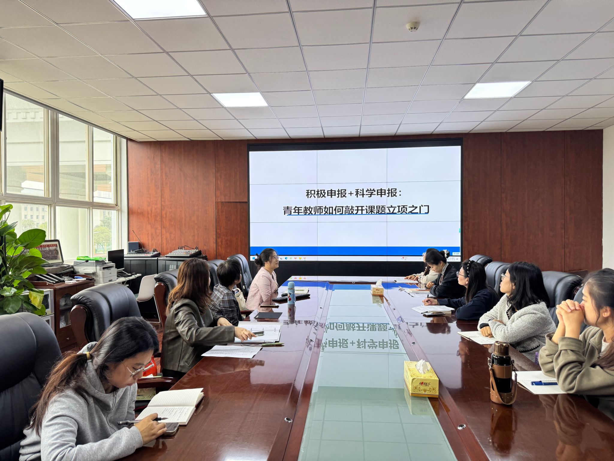 最后,朱老师强调,科学申报的成功还依赖于对细节的极致追求。创新点的提炼要精准、实在,避免空泛;研究团队的组建要结构合理,优势互补;会议鼓励青年教师要善于借力,主动向有经验的同行请教,反复修改、精益求精,将申报书打磨成一件精品。最后,会议在总结中寄语全体青年教师,要以积极的态度拥抱挑战,以科学的方法指引行动,将课题申报作为系统性科研训练,持之以恒,必能积累沉淀,最终成功敲开课题立项之门,为我校科研事业的高质量发展注入源源不断的青春动能。