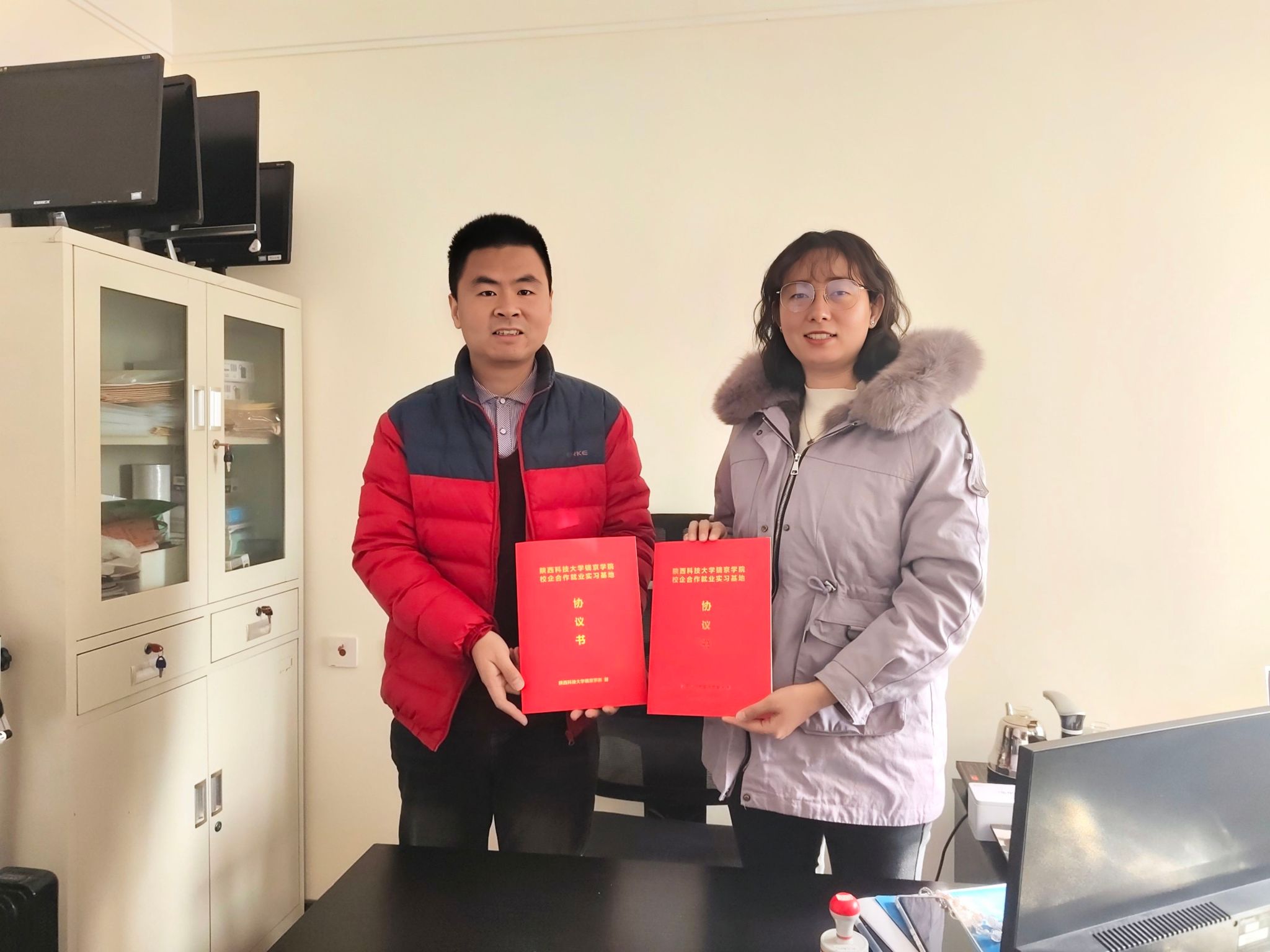 双方一致认为,深化校企合作,不仅有助于精准对接企业的人才需求,培养具备扎实专业技能与良好职业素养的应用型人才,更能有效促进教学改革与资源共享。随后,在双方代表的共同见证下,王文豪主任与吴总签署校企合作协议,并为“陕西科技大学镐京学院就业实习基地”揭牌,标志着双方合作进入新的阶段。