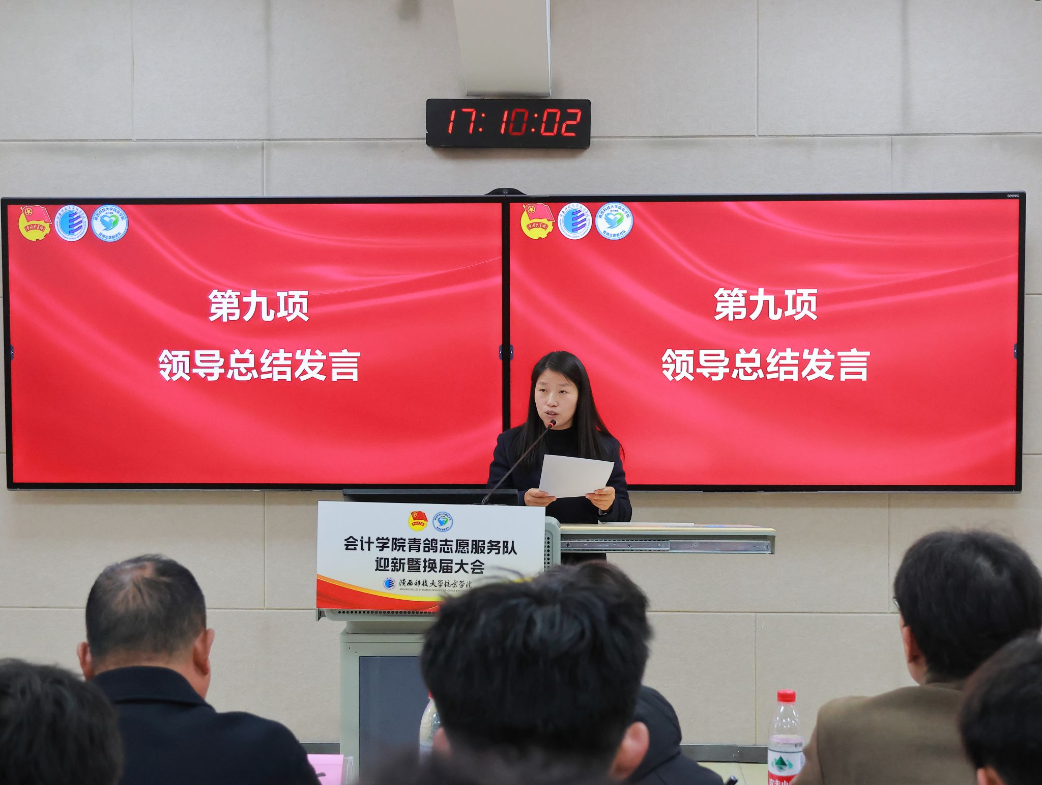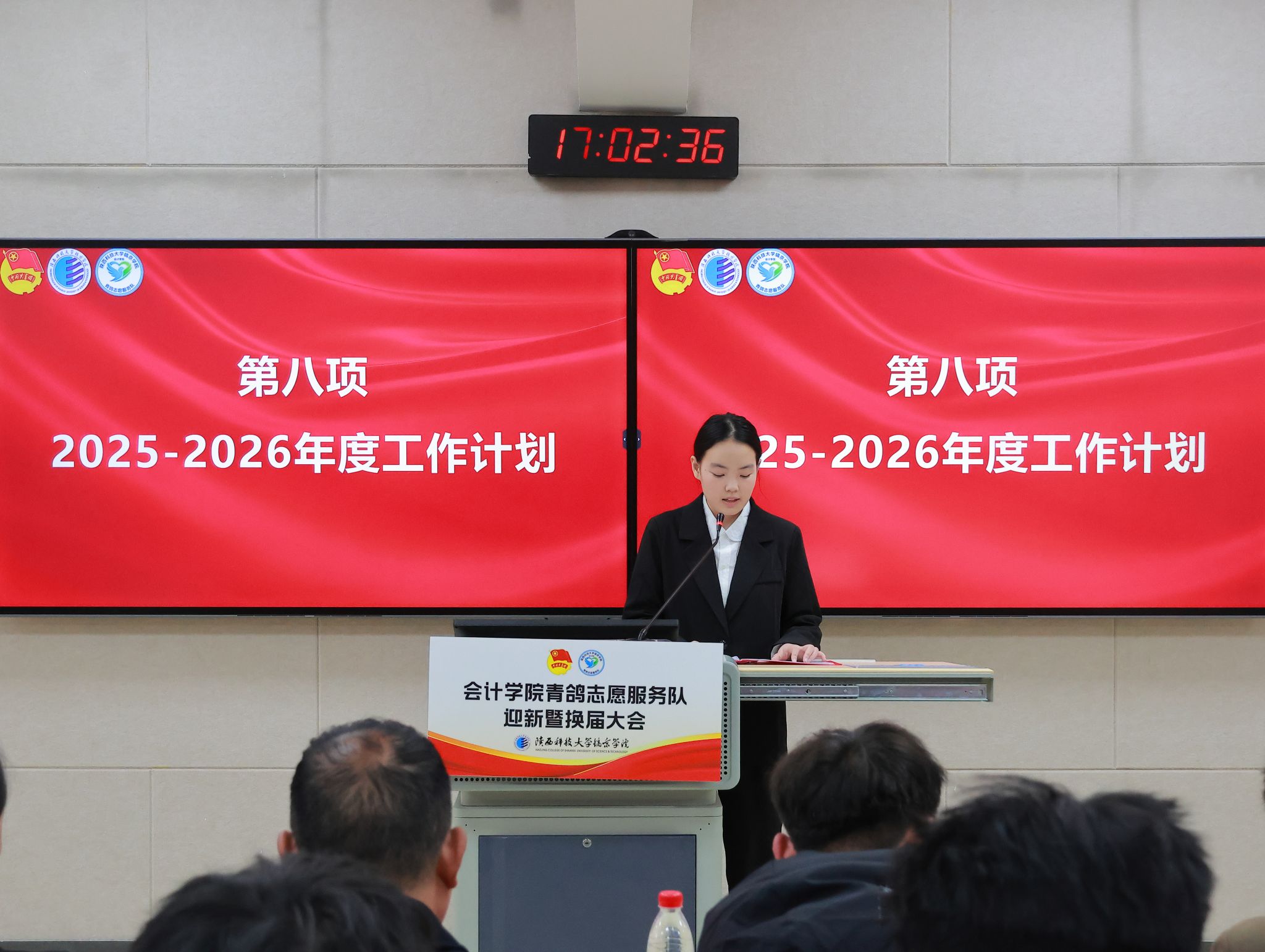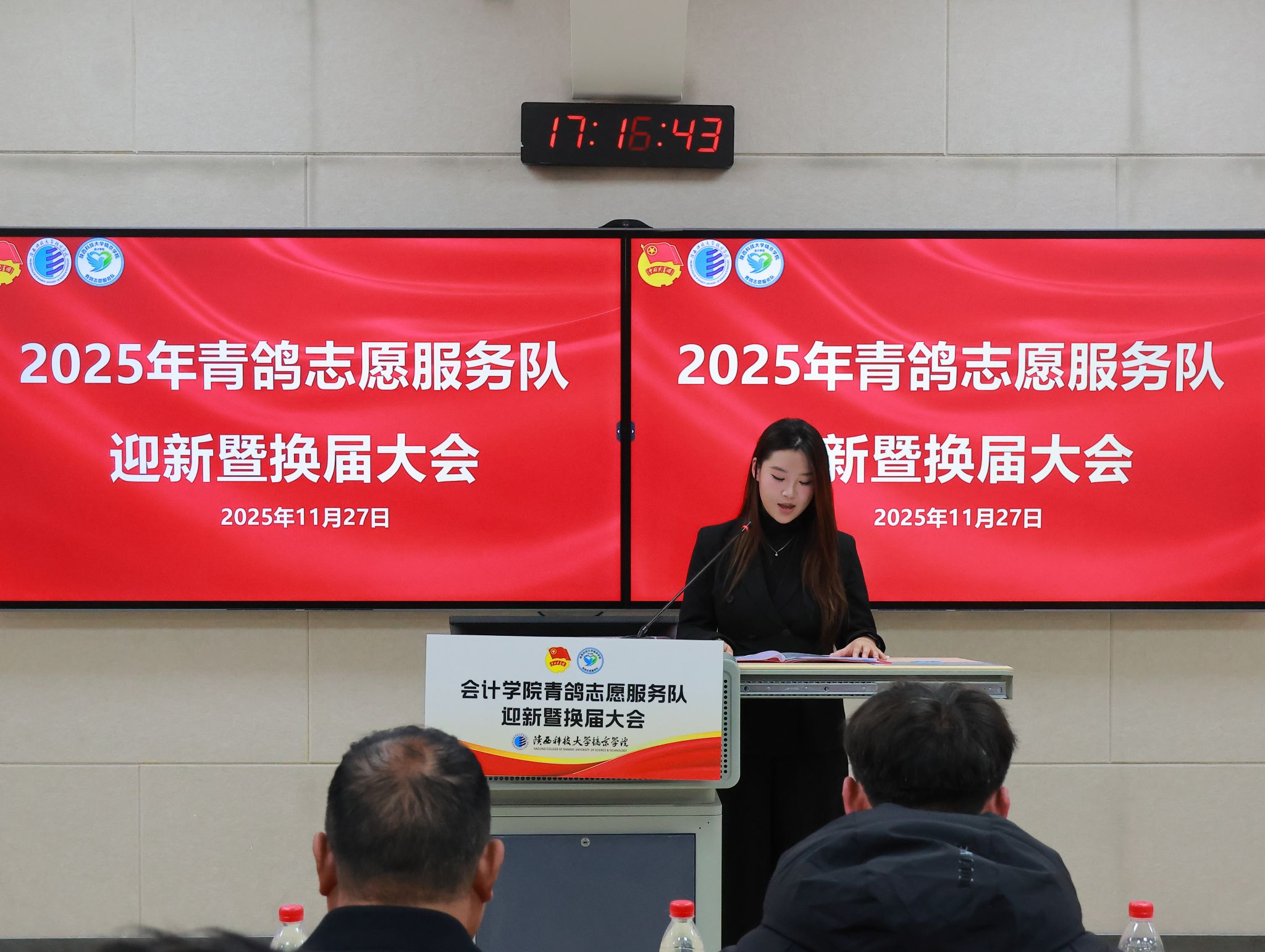 此次换届大会的成功举行,不仅完成了志愿服务队的组织交接,更凝聚了志愿力量、明确了发展方向。站在新的历史起点,会计学院青鸽志愿服务队将以更加饱满的热情、更加务实的作风,践行志愿使命,传递爱心温暖,为公益事业发展注入青春动能,书写志愿服务的崭新篇章!