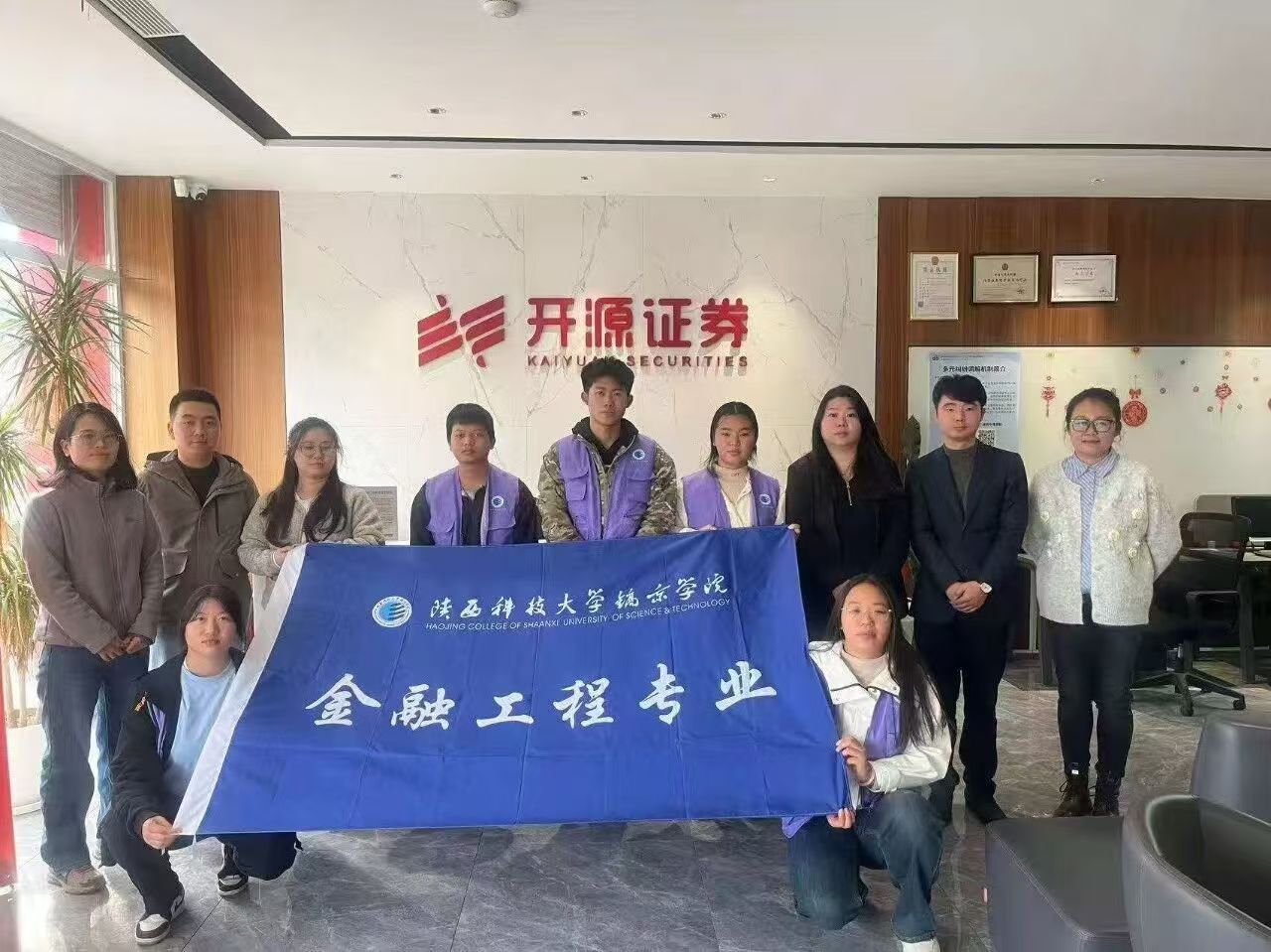 金融工程专业积极拓展校外实习基地,深化产教融合,为学生搭建从校园到职场的无缝衔接平台。一方面,与开源证券咸阳分公司共建“金融工程人才孵化基地”,并持续开展深度合作,组织2024级学生代表赴开源证券开展校企协同交流活动,围绕“十五五”规划共商人才培养新路径,明确课程体系优化与实践教学强化方向。
