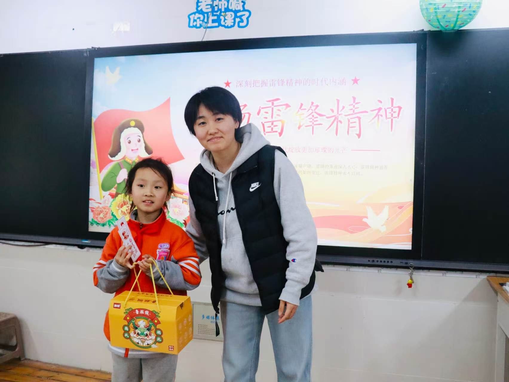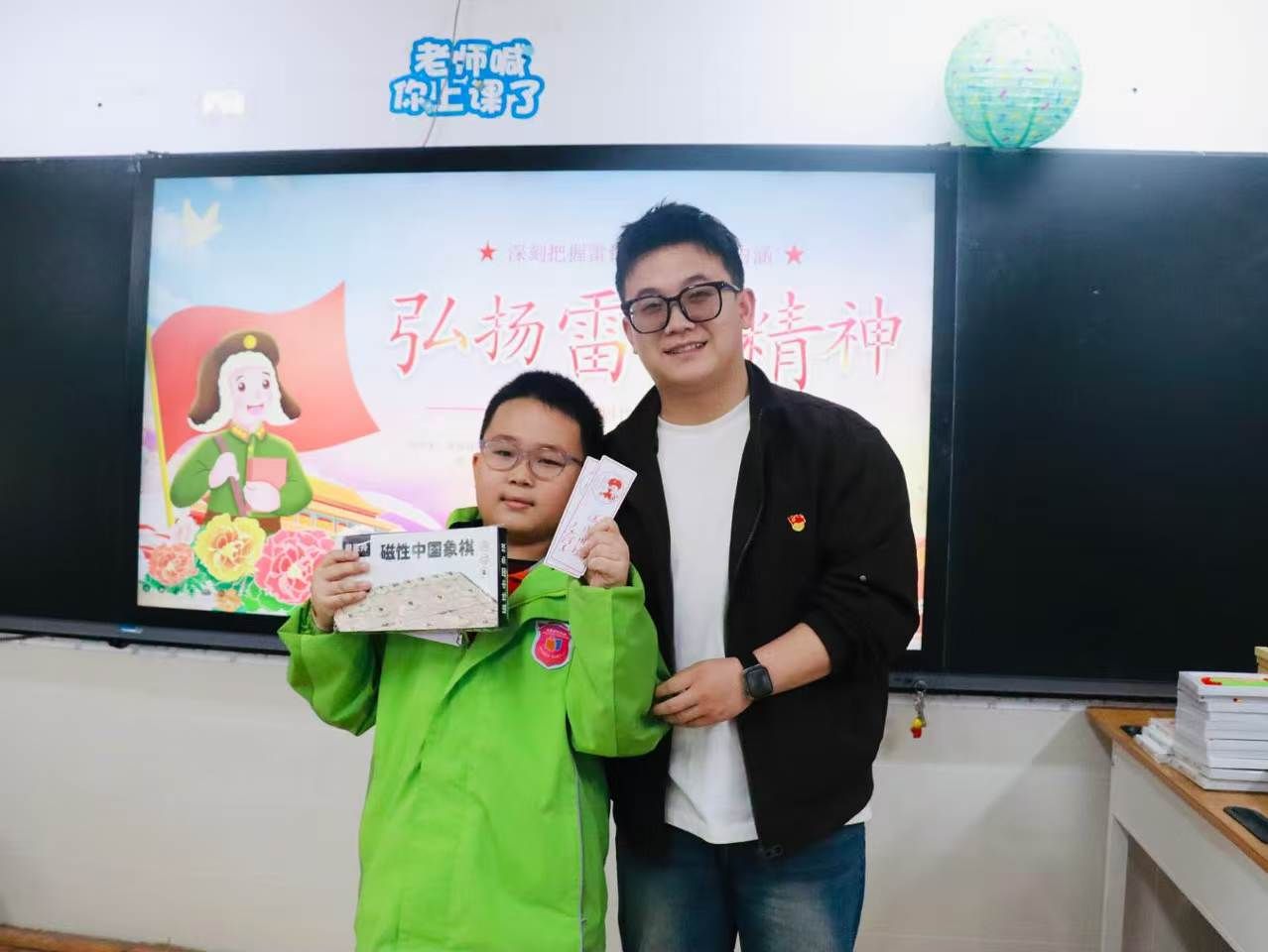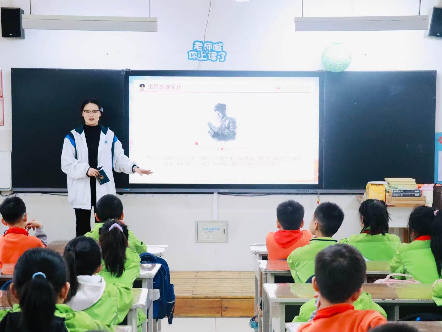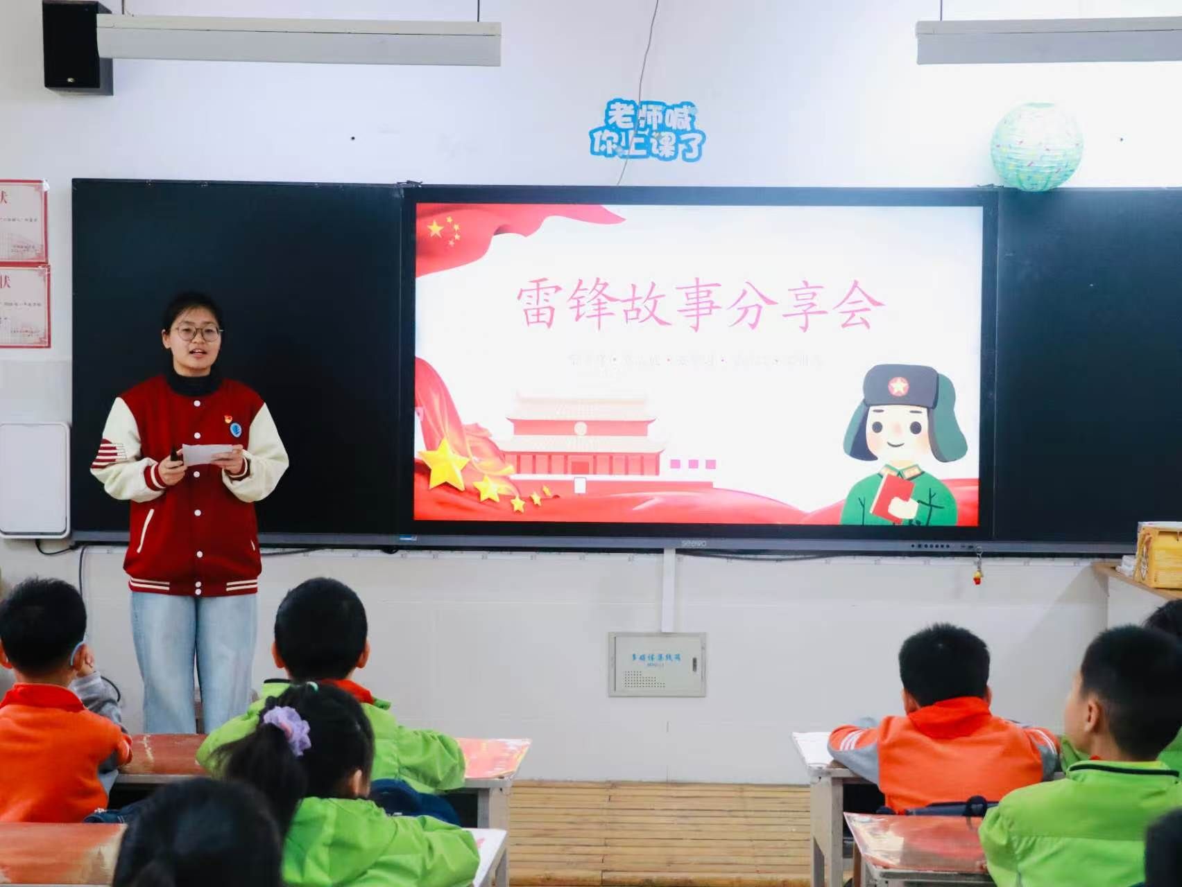 随后,朱怡菲同志带来“雷锋故事分享会”,沉浸式讲述雷锋的成长历程以及雨夜“摆渡人”“螺丝钉”敬业奉献等经典事迹,生动诠释雷锋的善良担当与敬业坚守。朱怡菲同志结合雷锋名言,引导孩子们感悟“做好事不分大小,帮他人即是快乐”的真谛,鼓励大家以“螺丝钉精神”对待学习与生活,认真做好每一件小事、善待每一个身边人,努力成长为有爱心、有担当、有品格的新时代好少年。