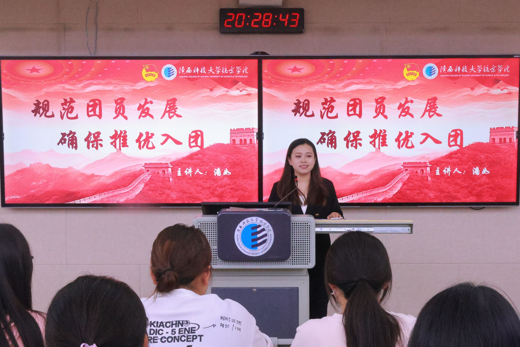 在入团启蒙教育中,团总支文体委员潘如为同学们介绍了团员发展的相关内容--团的基本知识、入团条件及团员发展流程。随后带大家学习了团的相关知识、团员发展流程以及《团章》的基本内容,并鼓励未入团的青年从思想上、生活上、学习上、行动上积极向团组织靠拢,不断端正入团动机,增强入团信念,主动参与团内工作及学院工作。