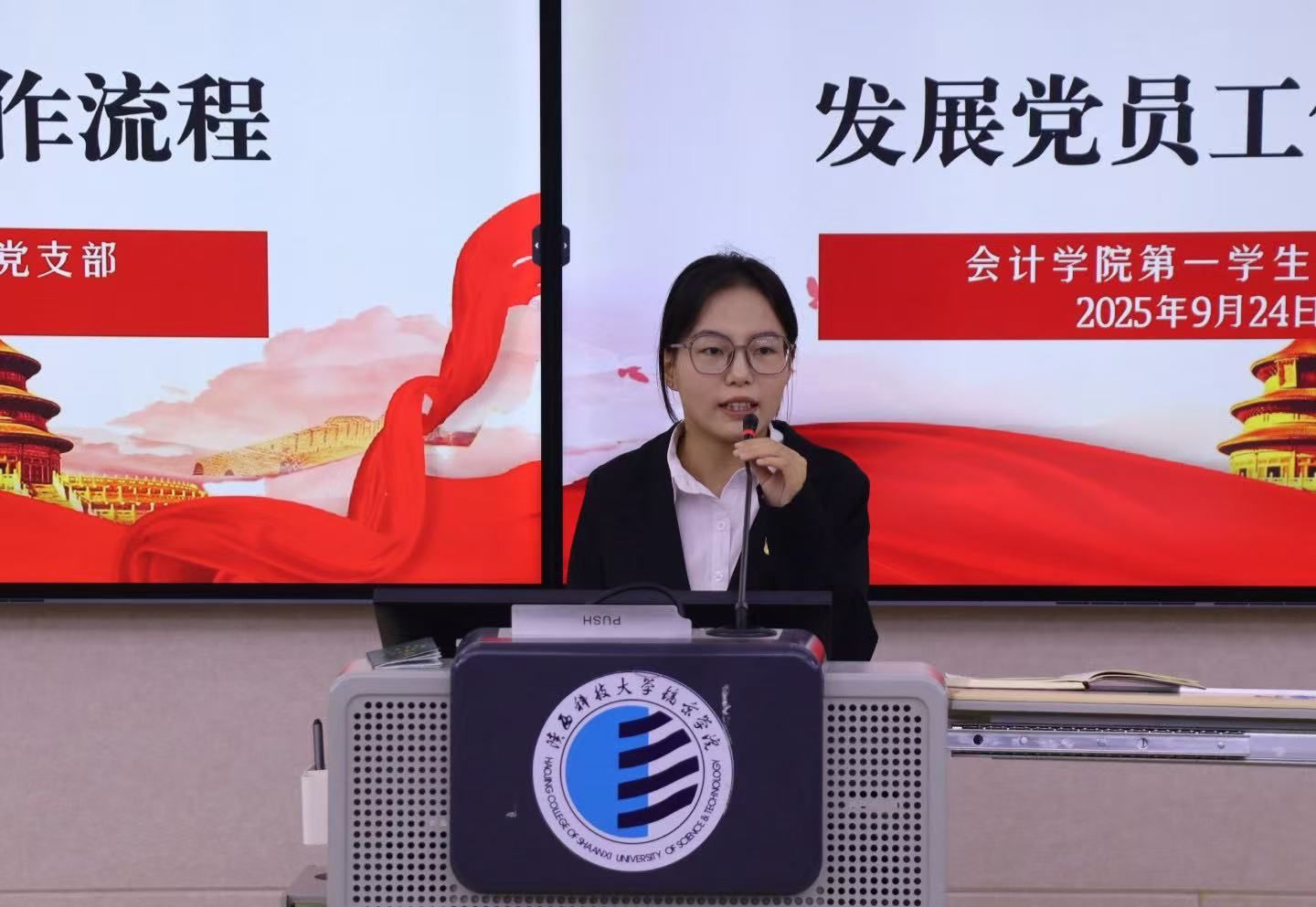 为深入学习贯彻习近平新时代中国特色社会主义思想和党的二十届三中全会精神,凝聚党员先锋力量,帮助2025级新生快速了解党组织与团组织建设情况,明确入团、入党的发展路径,同时搭建党员与新生的常态化沟通桥梁,9月23、24日,会计学院学生党支部深入2025级新生班级,开展党员包班网格化管理工作。