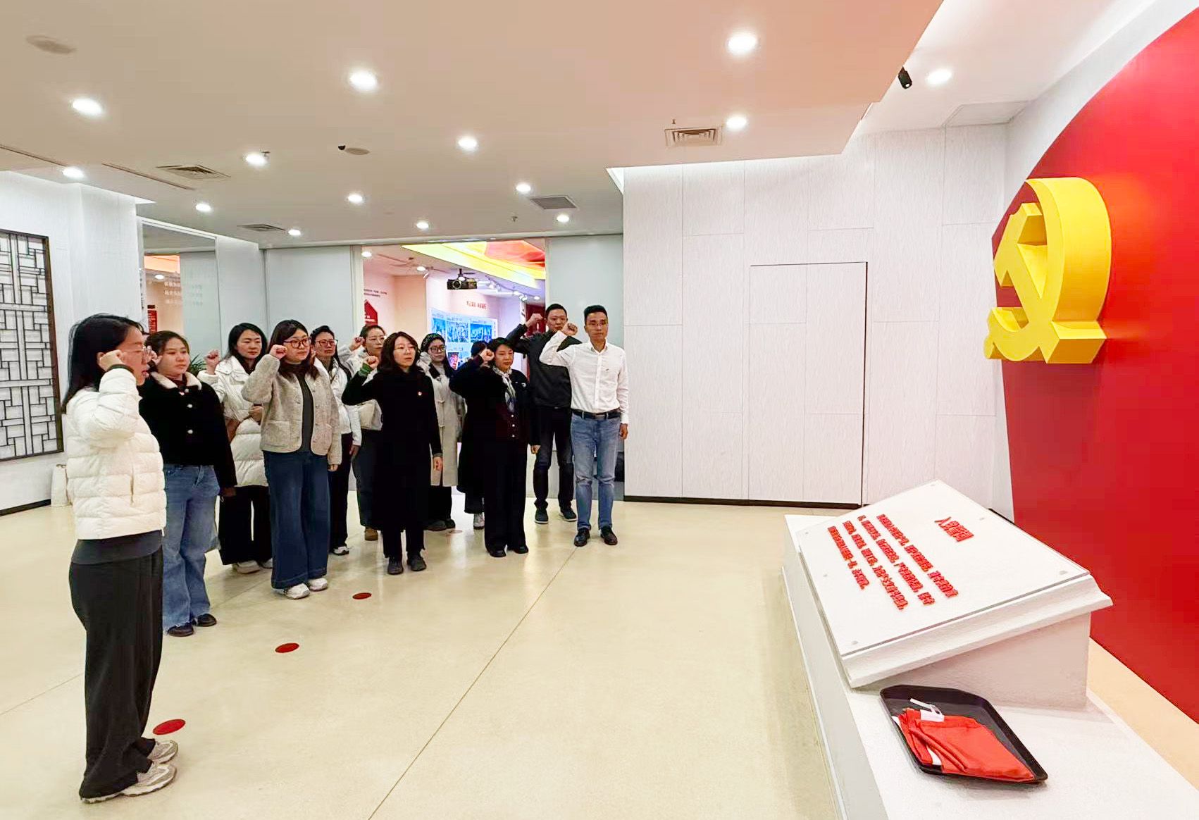 参观结束后,全体党员在鲜红的党旗下整齐列队,举起右拳,由党支部副书记王敏领誓,庄严重温入党誓词。“我志愿加入中国共产党,拥护党的纲领,遵守党的章程……”铿锵有力的誓言回荡在现场,不仅重温了入党时的坚定承诺,更强化了作为党员教师的责任与担当。