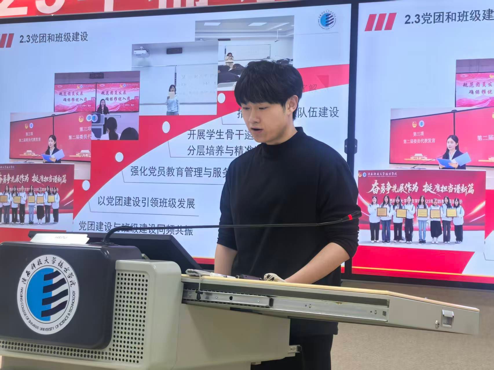 以主题党日活动为重要载体,累计开展“雷锋精神传薪火,两会精神引方向”“追寻红色足迹,弘扬照金精神”等特色主题党日活动43次,创新采用“实践课堂+移动课堂”模式,将活动现场延伸至专业实践、志愿服务一线,实现党建工作与学生培养、学科建设同频共振。各支部严格对照“七个有力”全面提升组织力,2025年党总支获评校级“先进基层党总支”“党建工作标杆院系”,第一学生党支部被陕西科技大学党委评为“先进基层党支部”,第一、第二学生支部入选陕西科技大学“党建样板支部培育项目”,第三支部获批校级“党建工作样板支部”。