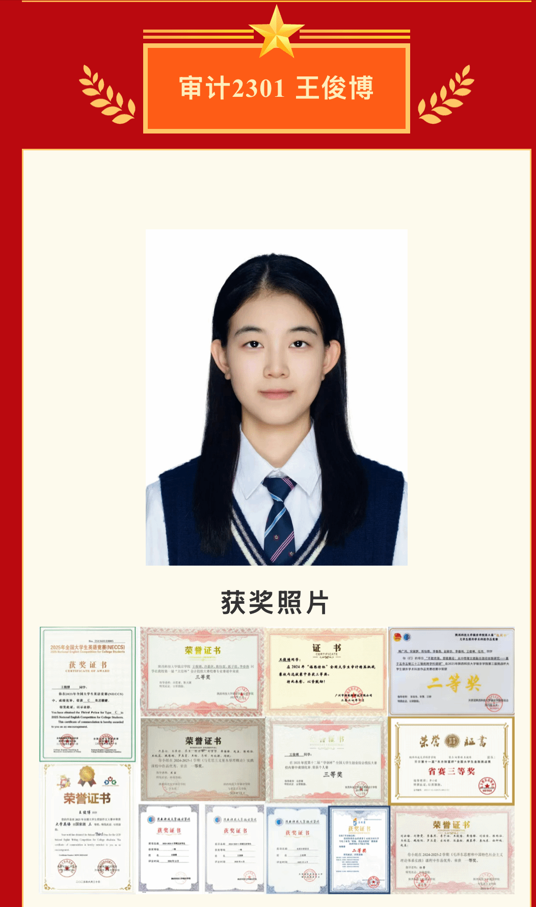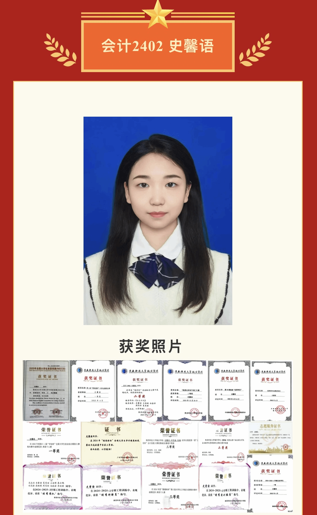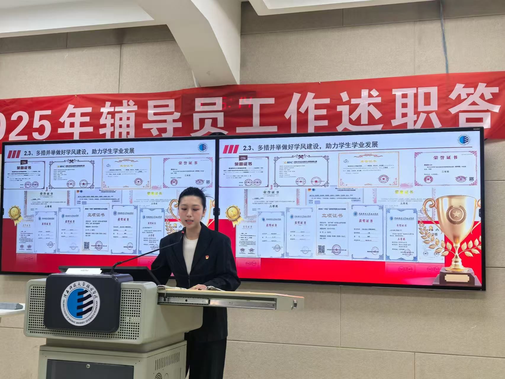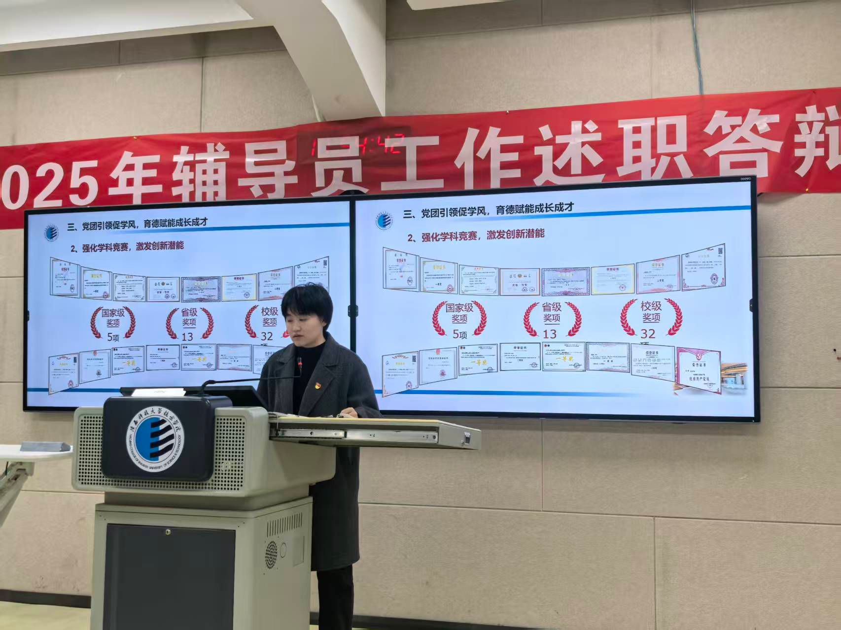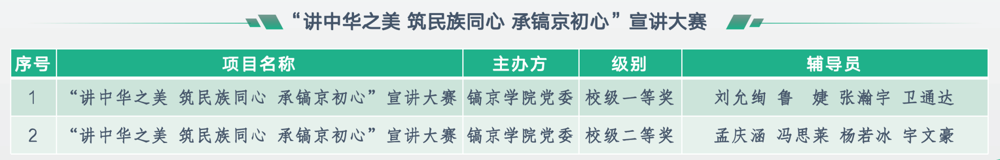 在校党委组织的“讲中华之美·筑民族同心·承镐京初心”宣讲大赛中,8名辅导员荣获校级一、二等奖,用生动的语言传递思想力量;在首届学生资助工作者素质能力大赛中,耿小源老师,冯思莱老师,张慧老师以扎实的业务功底分别荣获一二三等奖,展现了资助育人的专业素养。