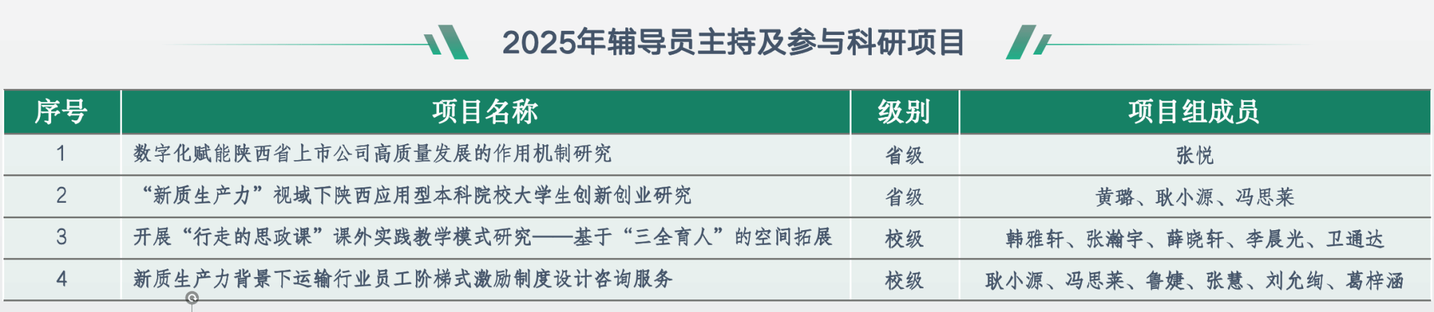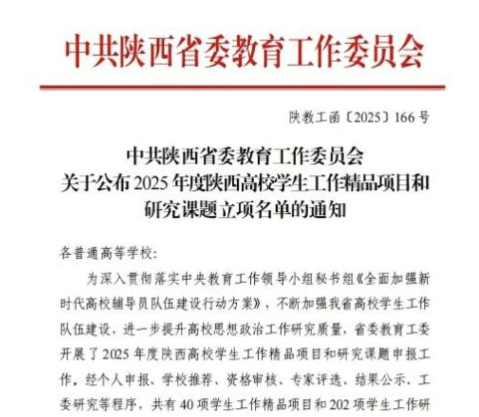 2025年,辅导员团队主持及参与省级科研项目2项、校级科研项目2项,研究方向涵盖数字化赋能、创新创业、思政教育等领域,用专业研究为育人工作提供理论支撑。