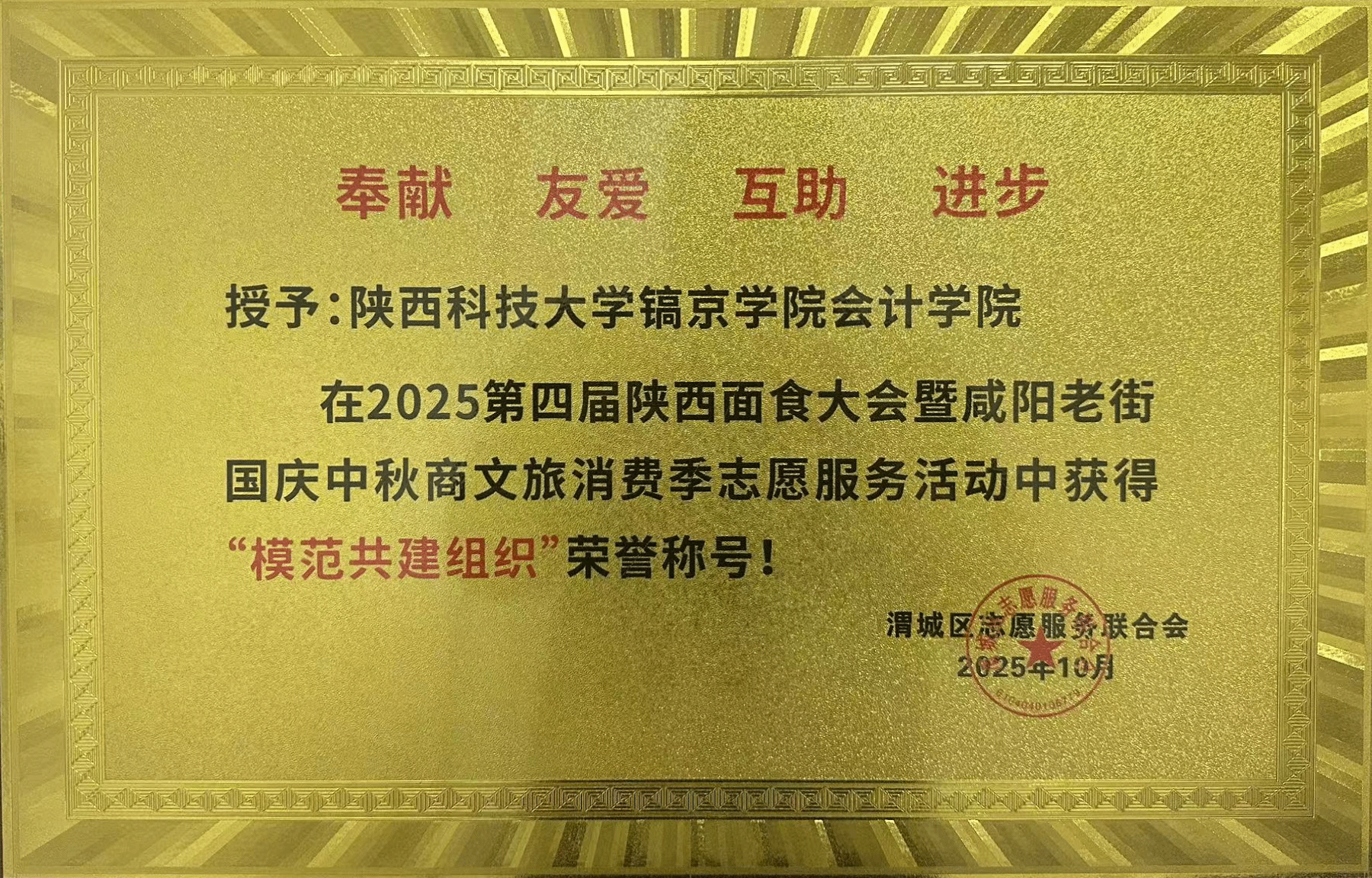 将党建工作与志愿服务深度融合,与咸阳慈善协会、咸阳市渭城区志愿服务联合会共建志愿服务基地,组建“青鸽志愿队”。全年积极参与全国跳绳锦标赛陕西省选拔赛、咸阳市助力高考、渭河环保、敬老爱老、博爱特殊儿童关爱等47场大型志愿服务活动,累计服务时长7229小时,服务人数超3000人。青年学子在志愿服务中传承优良传统、锤炼吃苦品质,用实际行动践行社会责任,展现会计学子的青春担当。