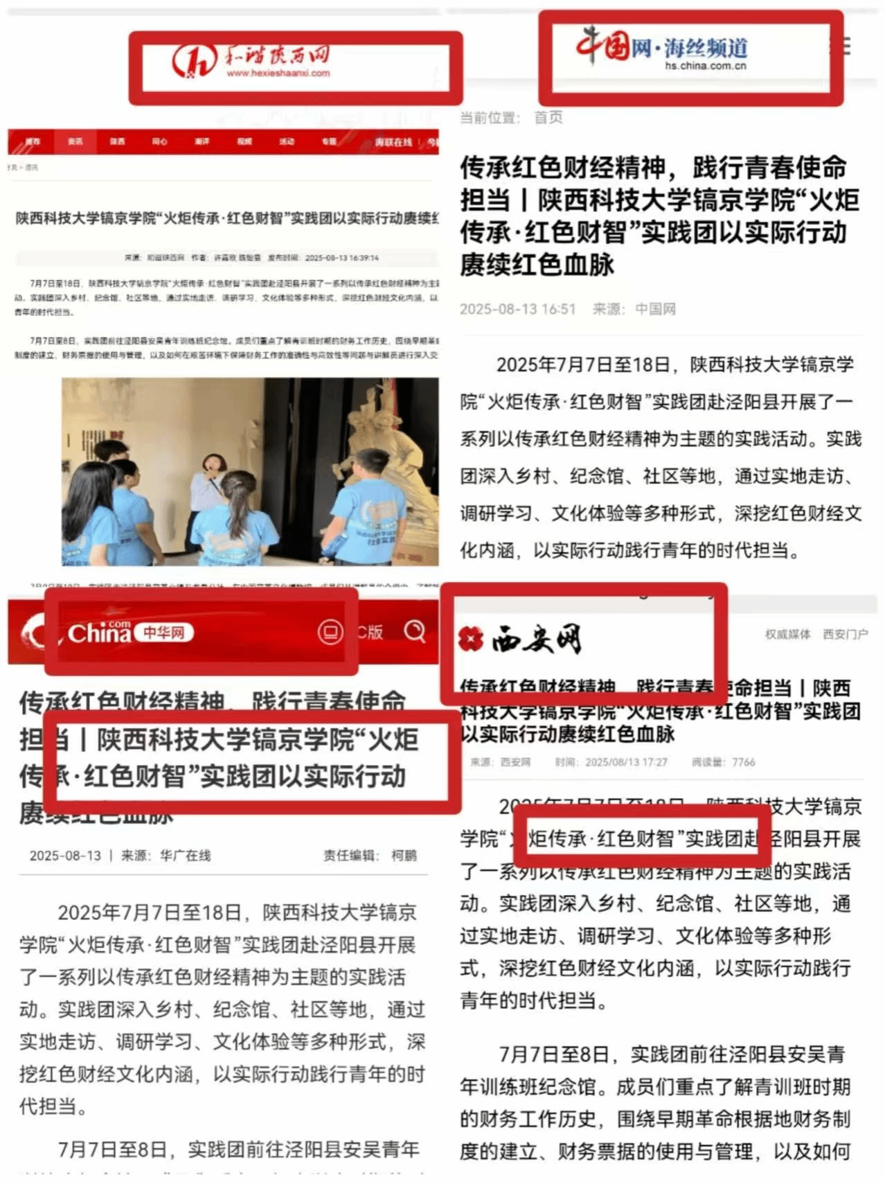 学院坚持“以实践促成长”,搭建多元化实践平台,让学生在广阔天地中锤炼过硬本领,彰显会计专业特色与青年担当,精心遴选组建26支重点实践团队,150名学子深入陕西延安、汉中、安康等多地基层开展暑期“三下乡”社会实践,聚焦乡村振兴、非遗传承、基层治理等领域,累计服务时长超5000小时。实践团队充分发挥会计学专业优势,开展财务咨询、政策宣讲、非遗文化调研等工作,相关事迹被中国日报、中华网、华商网等主流媒体报道100余次。同时,深化校地合作,与陕西省西安市碑林区秦源非遗馆等9家地方政府部门及企事业单位共建社会实践基地,为学生搭建稳定优质的实践平台。