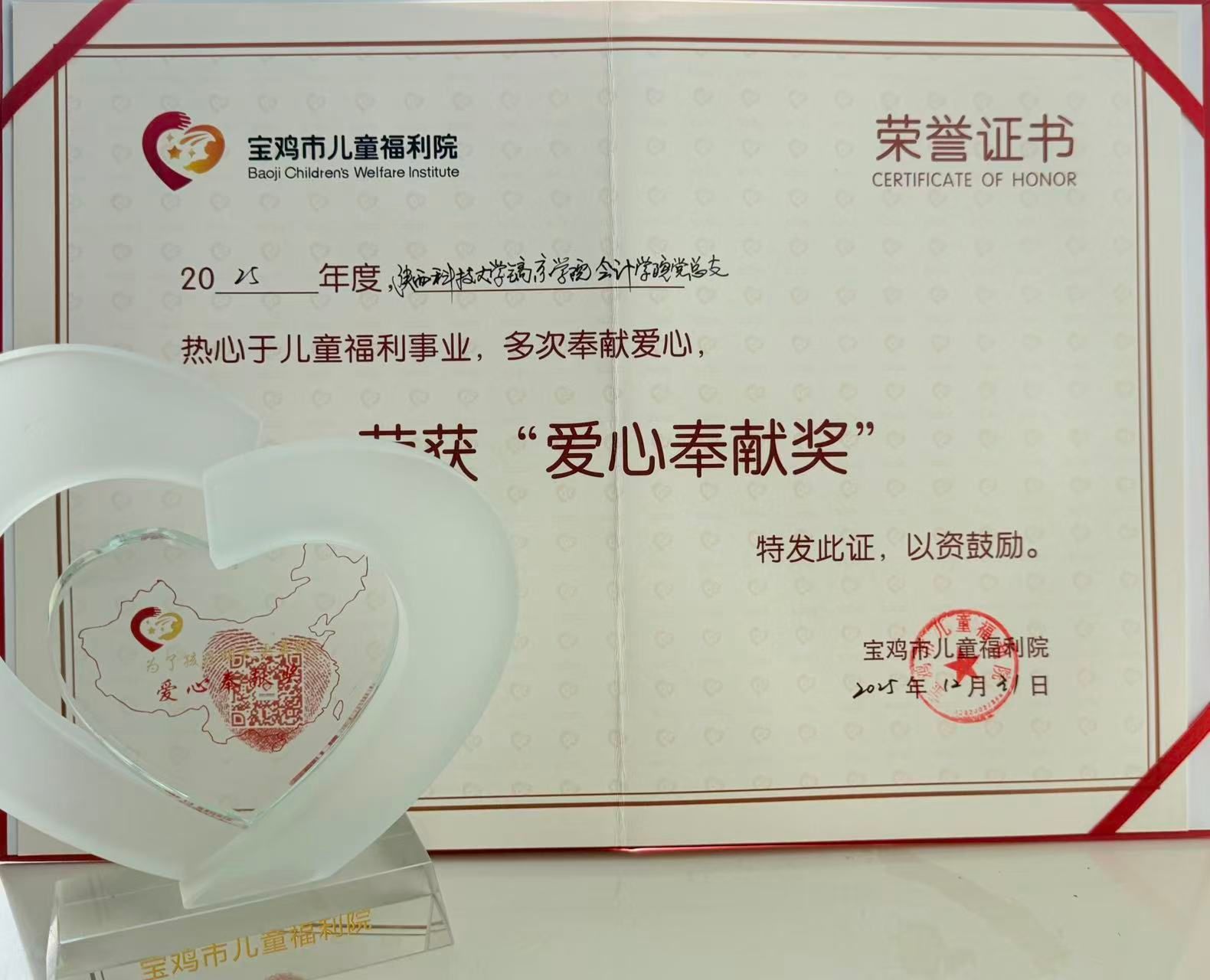党建领航聚合力,公益筑基显担当。近日,我院党总支应邀出席宝鸡市儿童福利院新春表彰盛典,因深耕儿童福利领域、创新构建长效服务机制,荣膺“爱心奉献”标杆单位称号,以高校智慧谱写“党建+公益”融合创新的时代华章,彰显高等教育服务国家战略的使命担当。