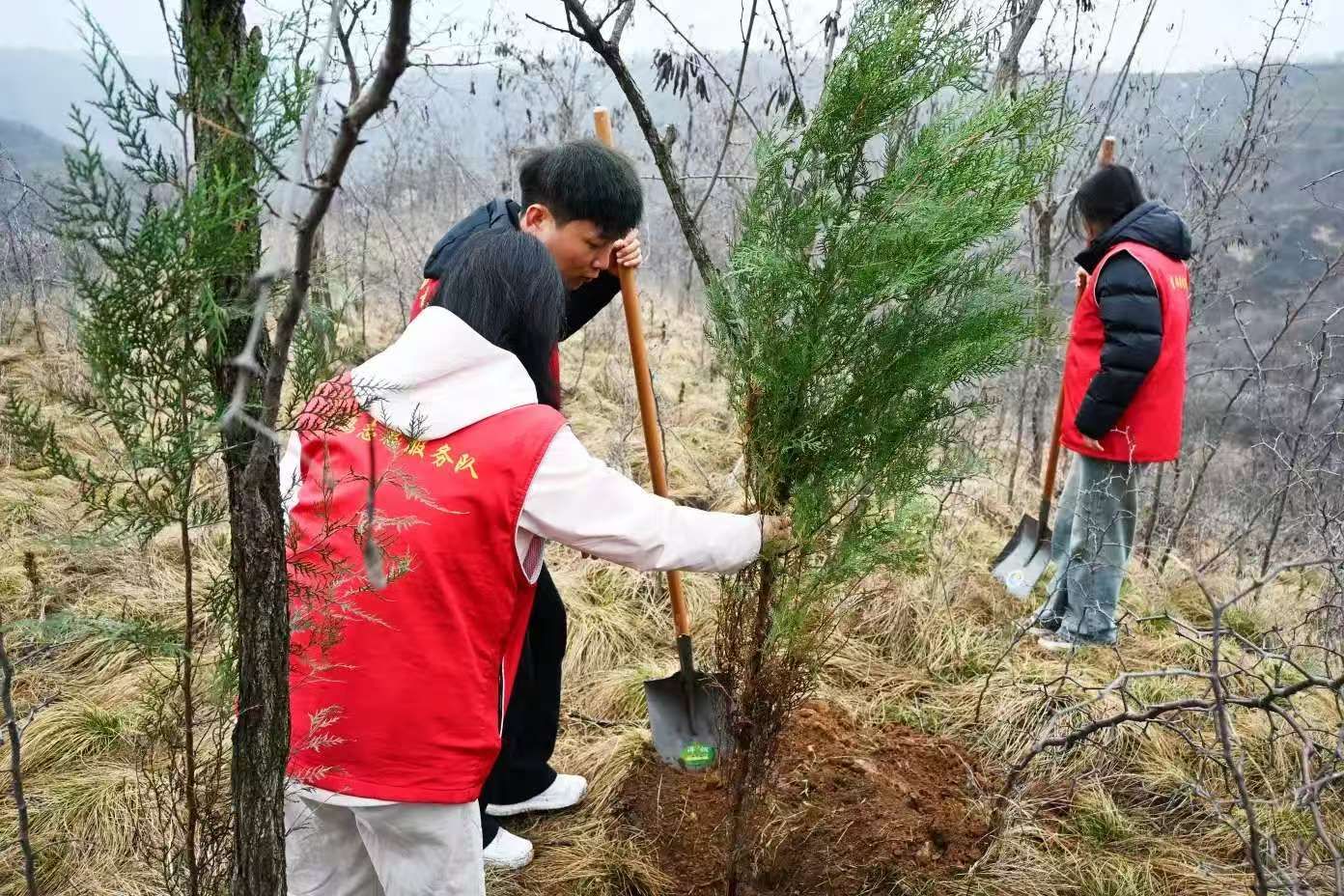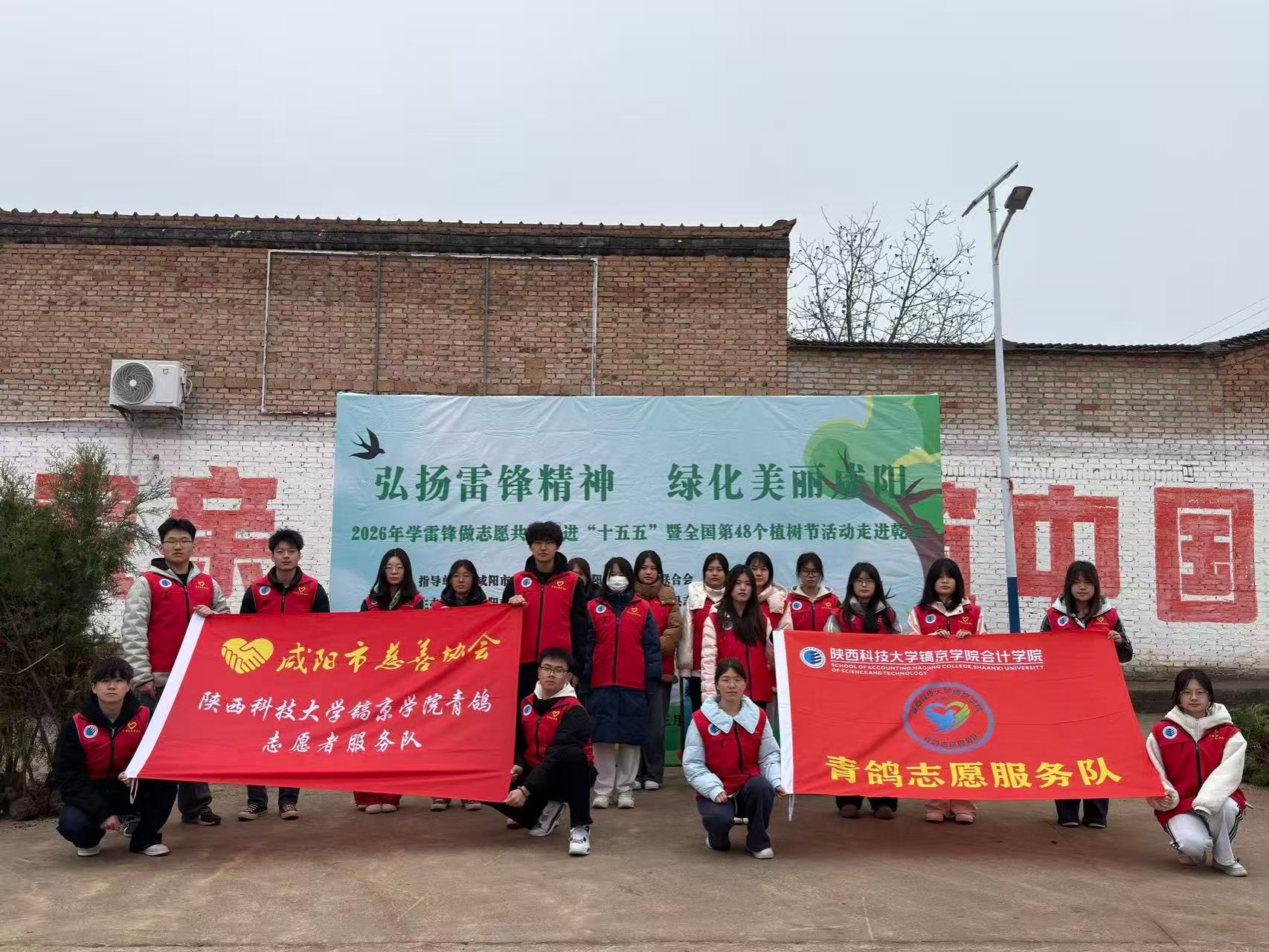 2026年3月8日,全国第48个植树活动之际,青鸽志愿服务队赴乾县梁山镇永久村,参与“弘扬雷锋精神·绿化美丽咸阳”植树活动,以实际行动践行生态文明理念,弘扬志愿精神。