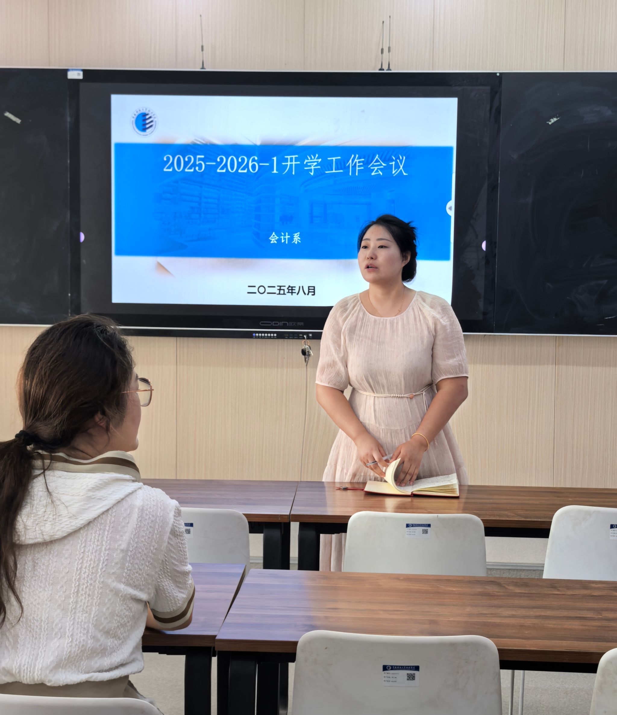 为统筹推进新学期教学与实践环节高质量运行,会计系于8月27日在实验楼312召开工作例会。系主任姚叶叶出席会议,会计系全体教师参加,会议由教研室主任王文豪主持。会议围绕开课准备、课堂教学与答疑安排、论文终稿抽检、补考与重修组织、认知实习与校企合作等重点工作进行了协调部署。姚叶叶老师首先对新学期教学运行作出统筹安排,强调要完成课程资料完善与规范归档,确保课程大纲、教案、授课进度表与课表时间严格对应;由课程负责人牵头组织新教师开课试讲、...
