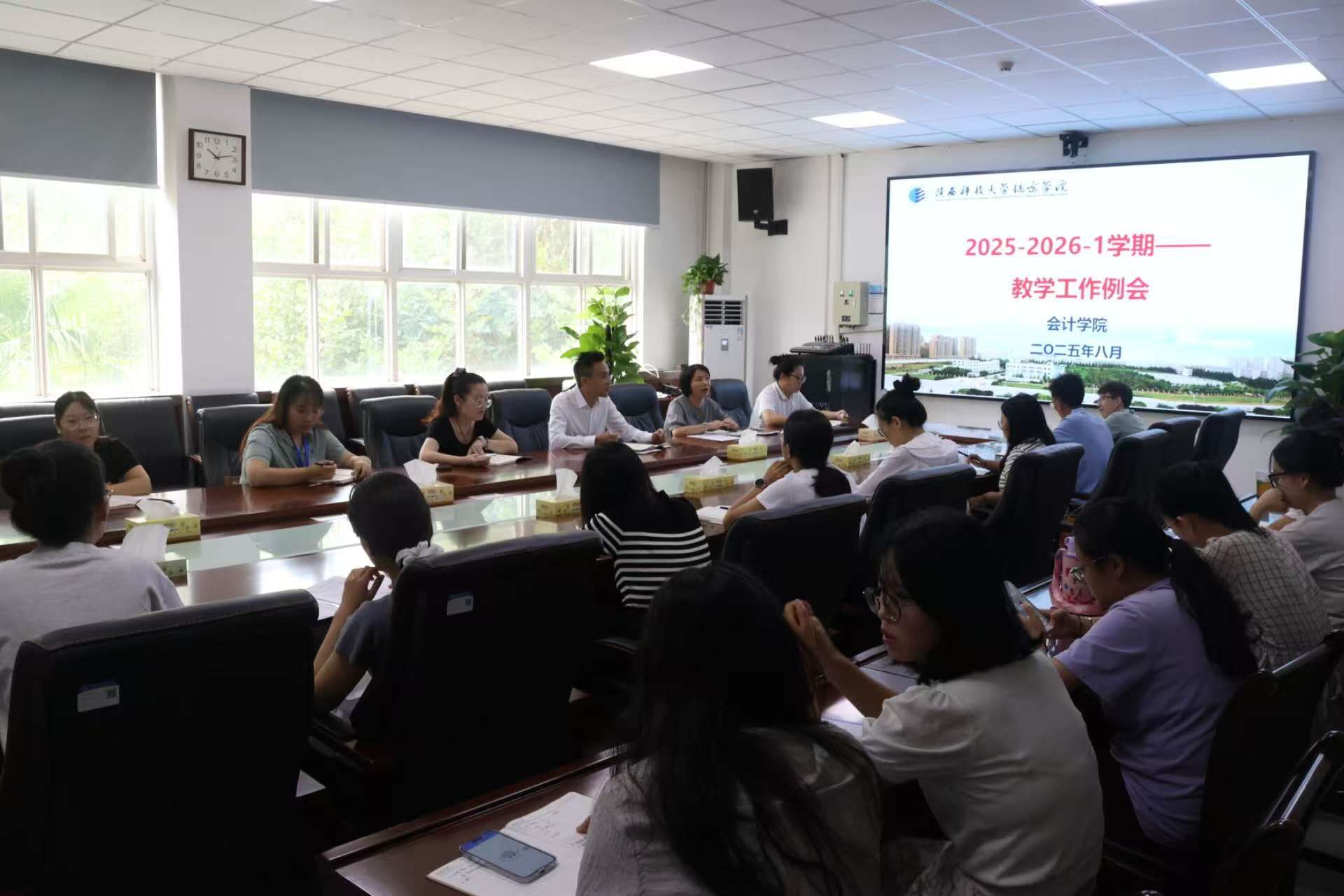 为统筹推进新学期教学工作有序开展,8月25日,会计学院于第二会议室召开新学期教学工作部署会议。院长赵卓、各教研室主任及骨干教师参会,会议由副院长徐琼主持。会议围绕新学期教学运行、课程建设、教材与论文抽检、实践教学与督导听课等重点工作进行了系统部署。会议伊始,副院长徐琼围绕新学期教育教学工作有序开展进行了系统部署,她指出,开课准备是教学秩序平稳起步的前置条件,必须把教学资源配置、课程文件完善、教师到岗状态与课堂环境保障作为一体化工程统筹推进,...