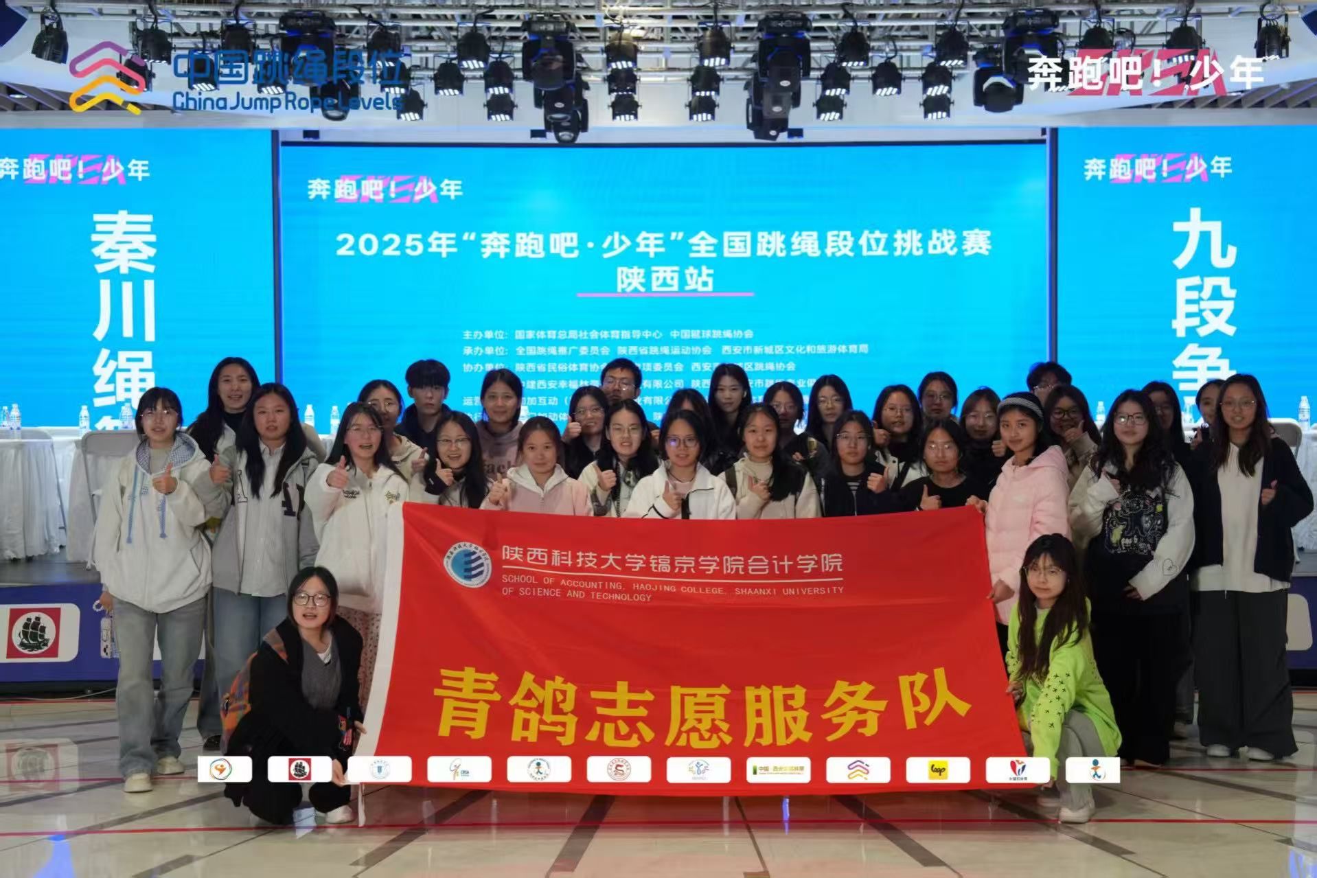 近日,陕西科技大学镐京学院会计学院青鸽志愿服务队圆满完成了2025年“奔跑吧·少年”全国跳绳段位挑战赛(陕西站)的全程服务保障工作,并因表现突出,被赛事组委会授予“体育道德风尚奖”。在为期三日的赛事中,青鸽志愿服务队的志愿者们以饱满的热情、严谨的态度和高效的执行力,全力投入赛事各项服务环节,为比赛的顺利举办贡献了青春力量。作为赛事后勤保障的重要支撑力量,青鸽志愿服务队围绕赛前、赛中、赛后各环节,周密部署、...